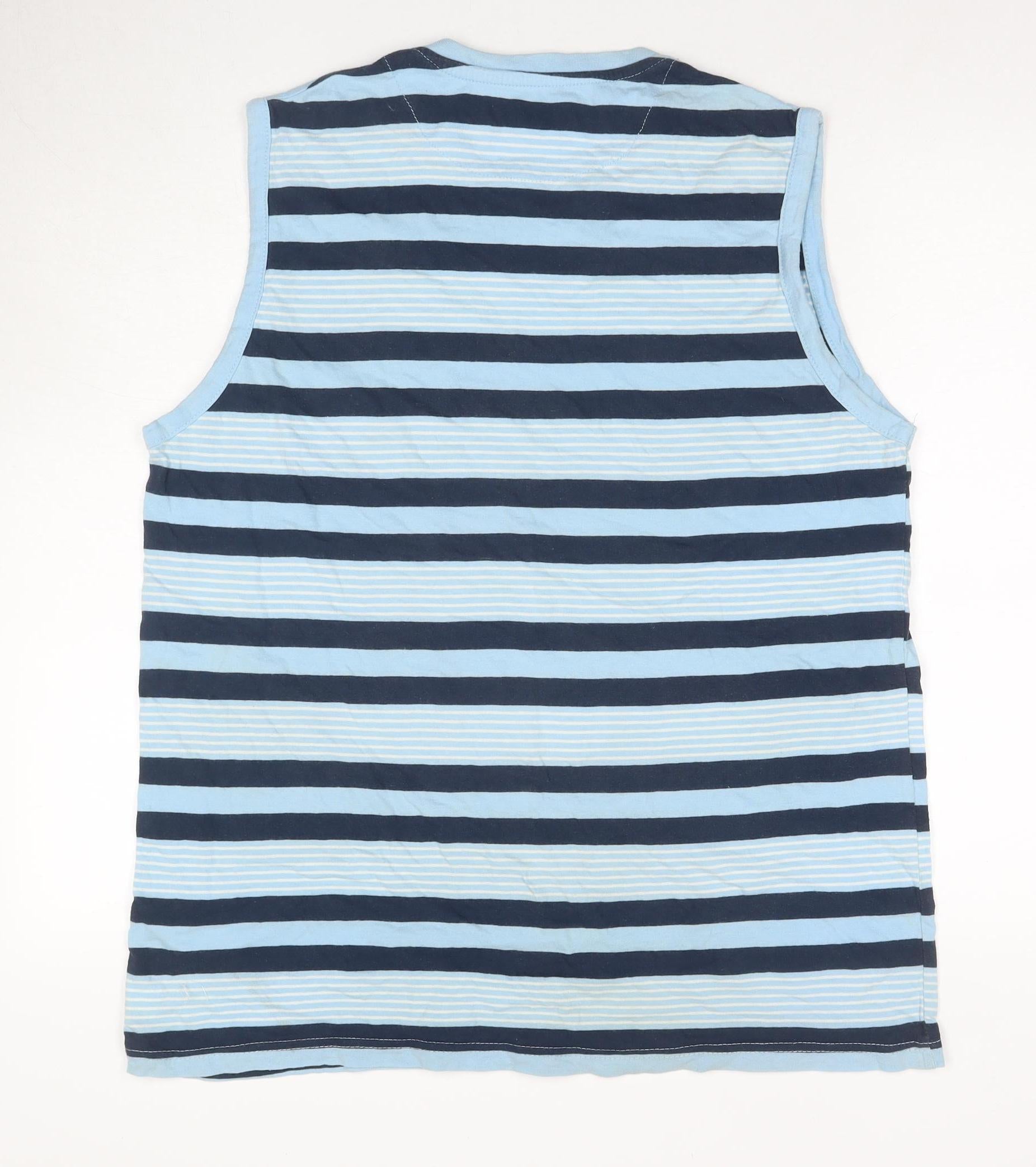 Pierre Cardin Men's Blue Striped Sleeveless T-Shirt, XL