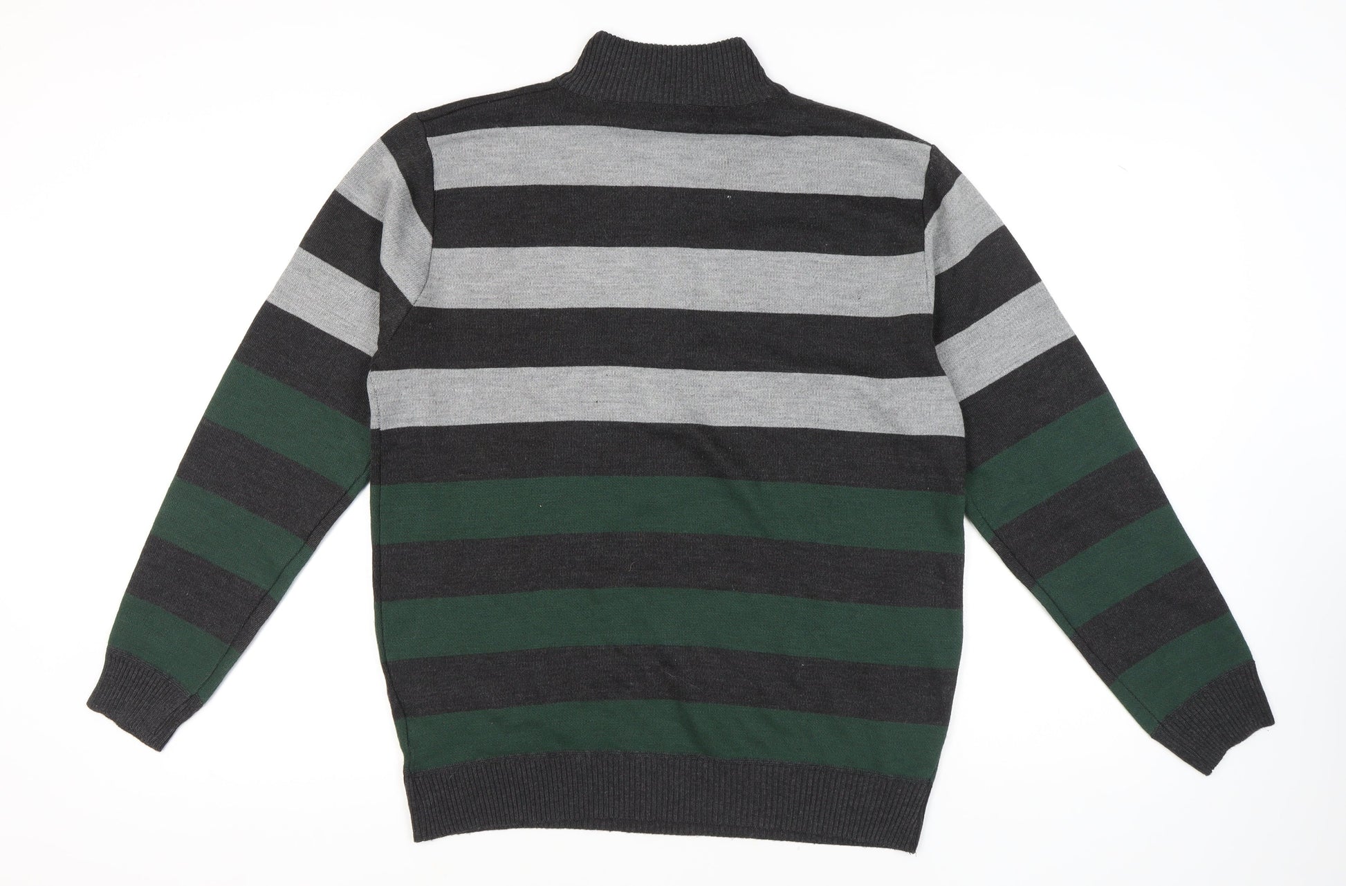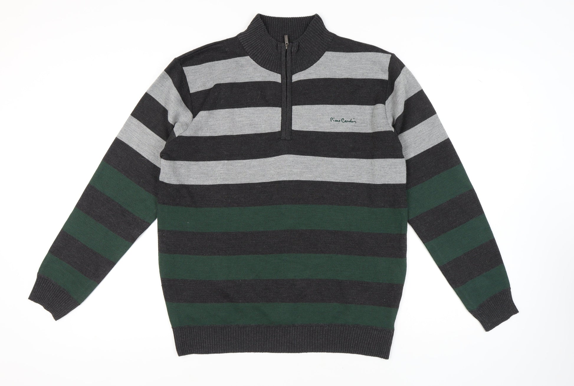 Pierre Cardin Men's Grey Striped Pullover Jumper, Size L