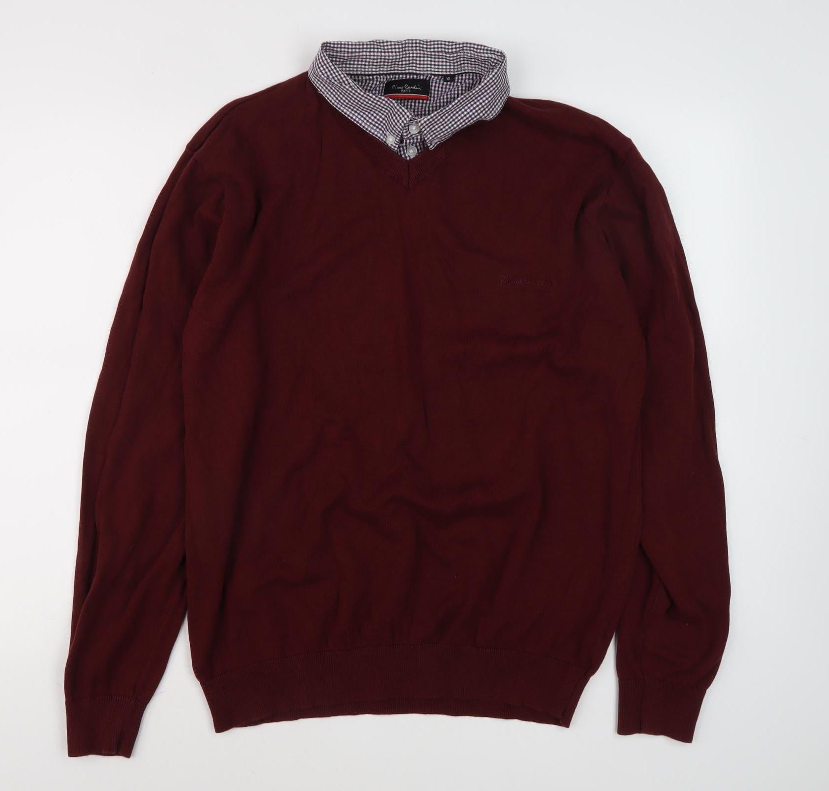 Pierre Cardin Men's Red XL Pullover V-Neck Jumper