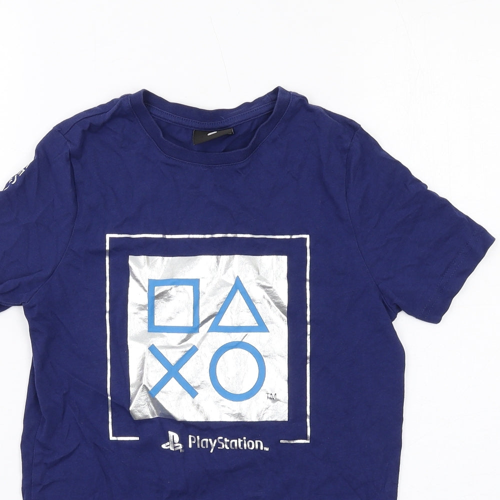 PlayStation Boys Blue Cotton Basic T-Shirt Size 9-10 Years Round Neck Pullover