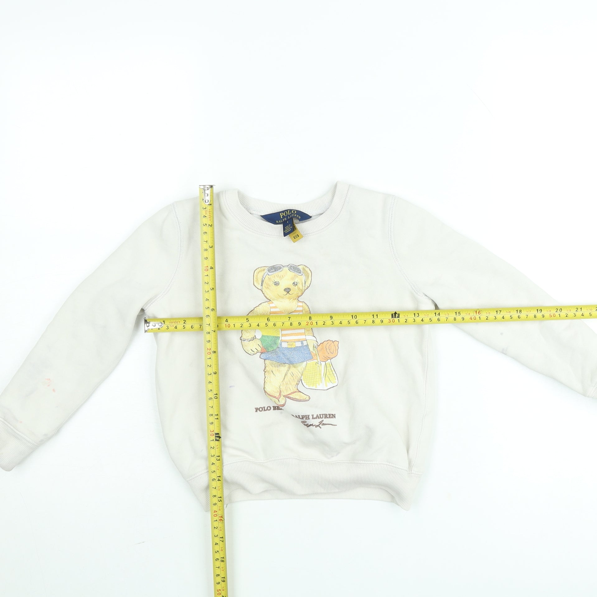 Polo Ralph Lauren Boys Beige Bear Graphic Jumper Size 6 Years Cotton Sweatshirt