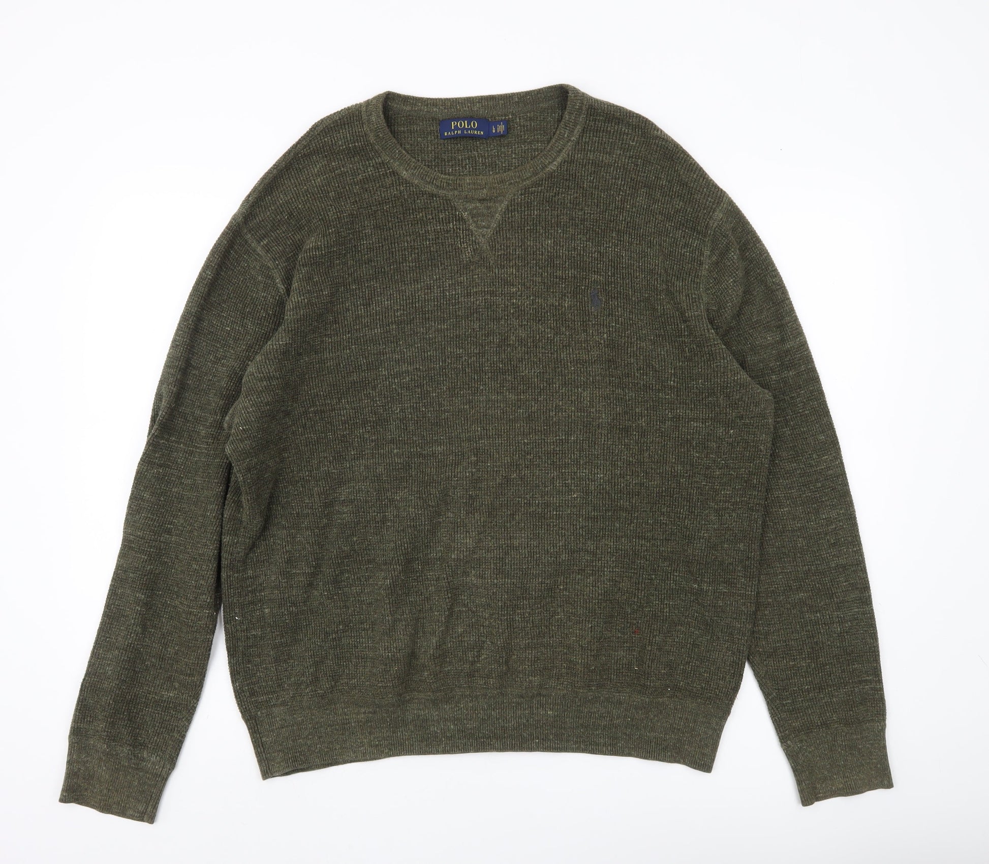 Polo Ralph Lauren Men’s Green Waffle Knit Cotton Pullover Jumper L
