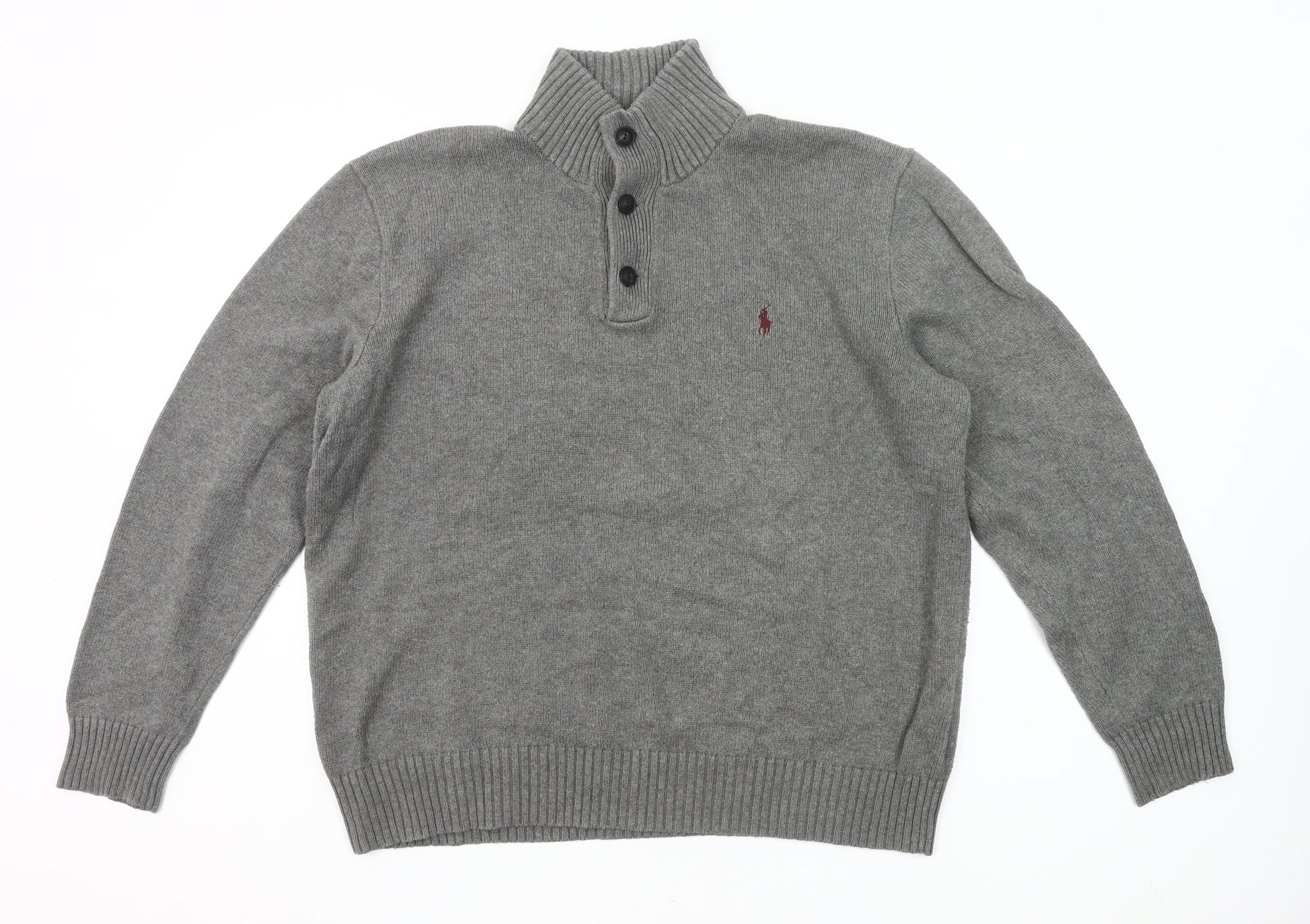 Polo Ralph Lauren Men’s Grey XL Cotton Henley Mock Neck Jumper