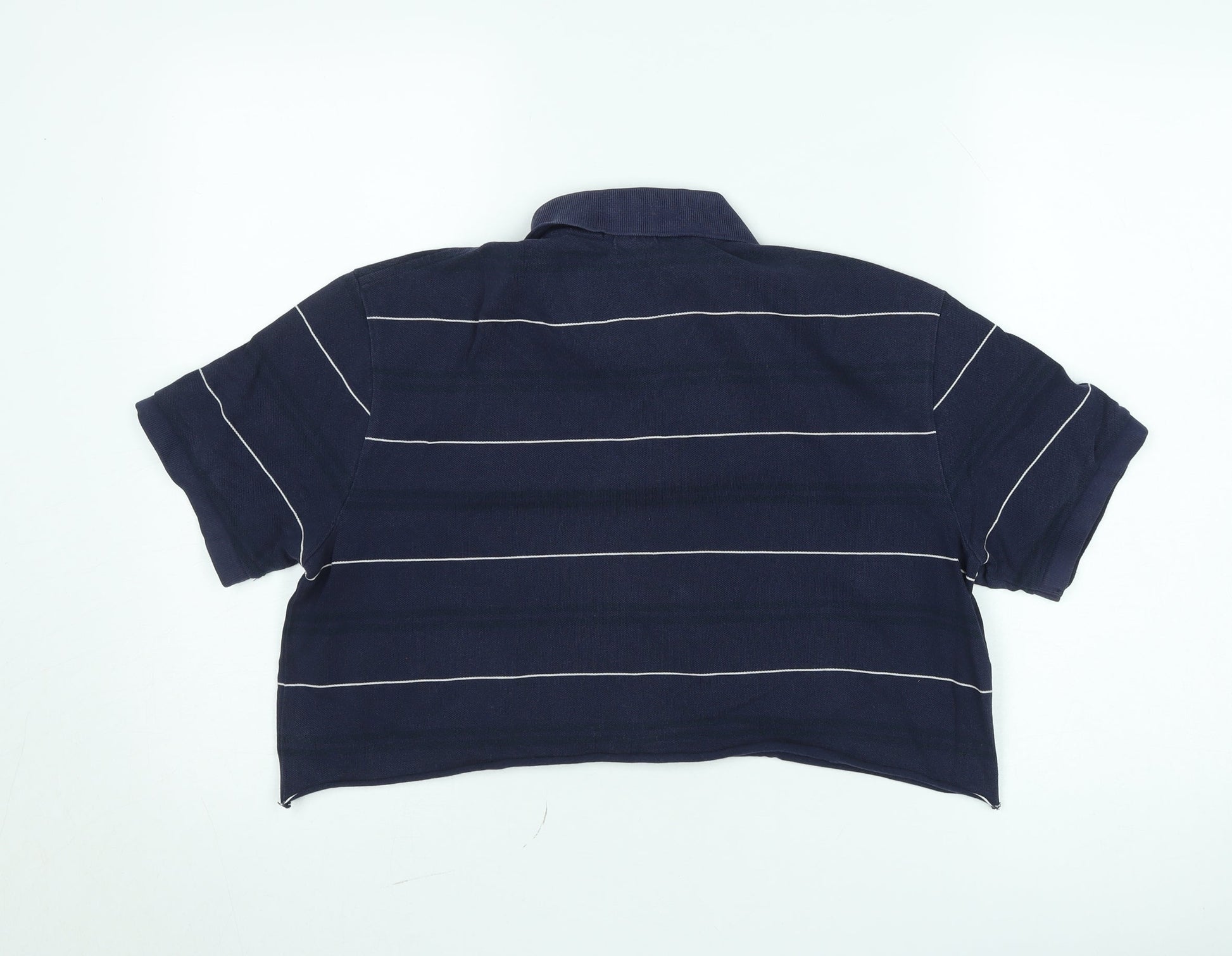 Polo Ralph Lauren Women Navy Blue Striped Polo Shirt L Custom Fit