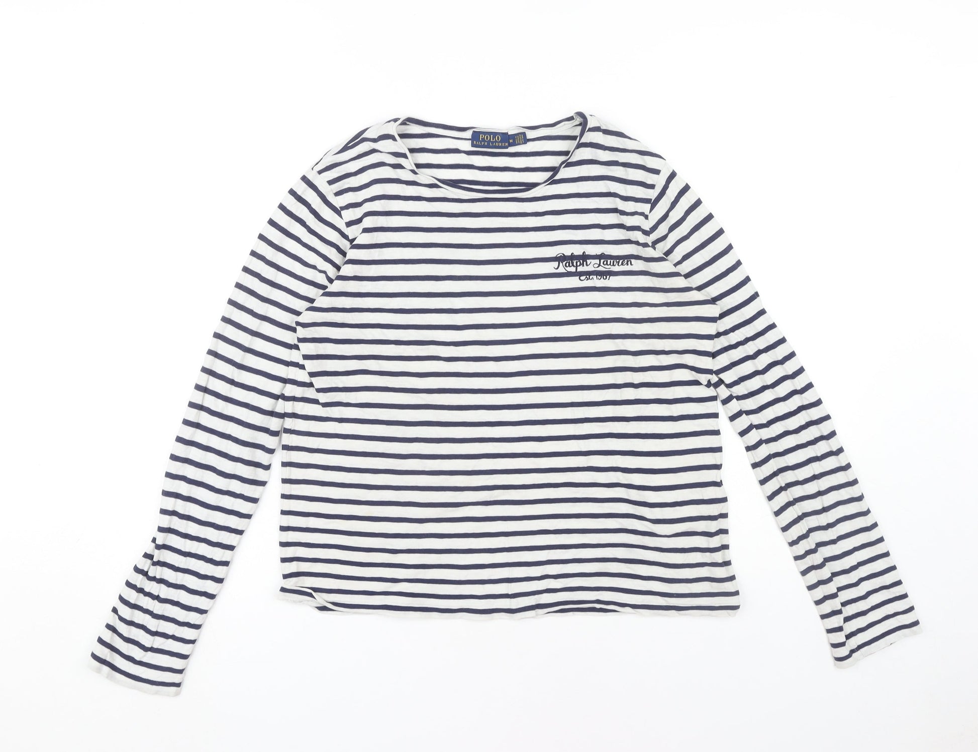 Polo Ralph Lauren Women's White Striped T-Shirt Medium