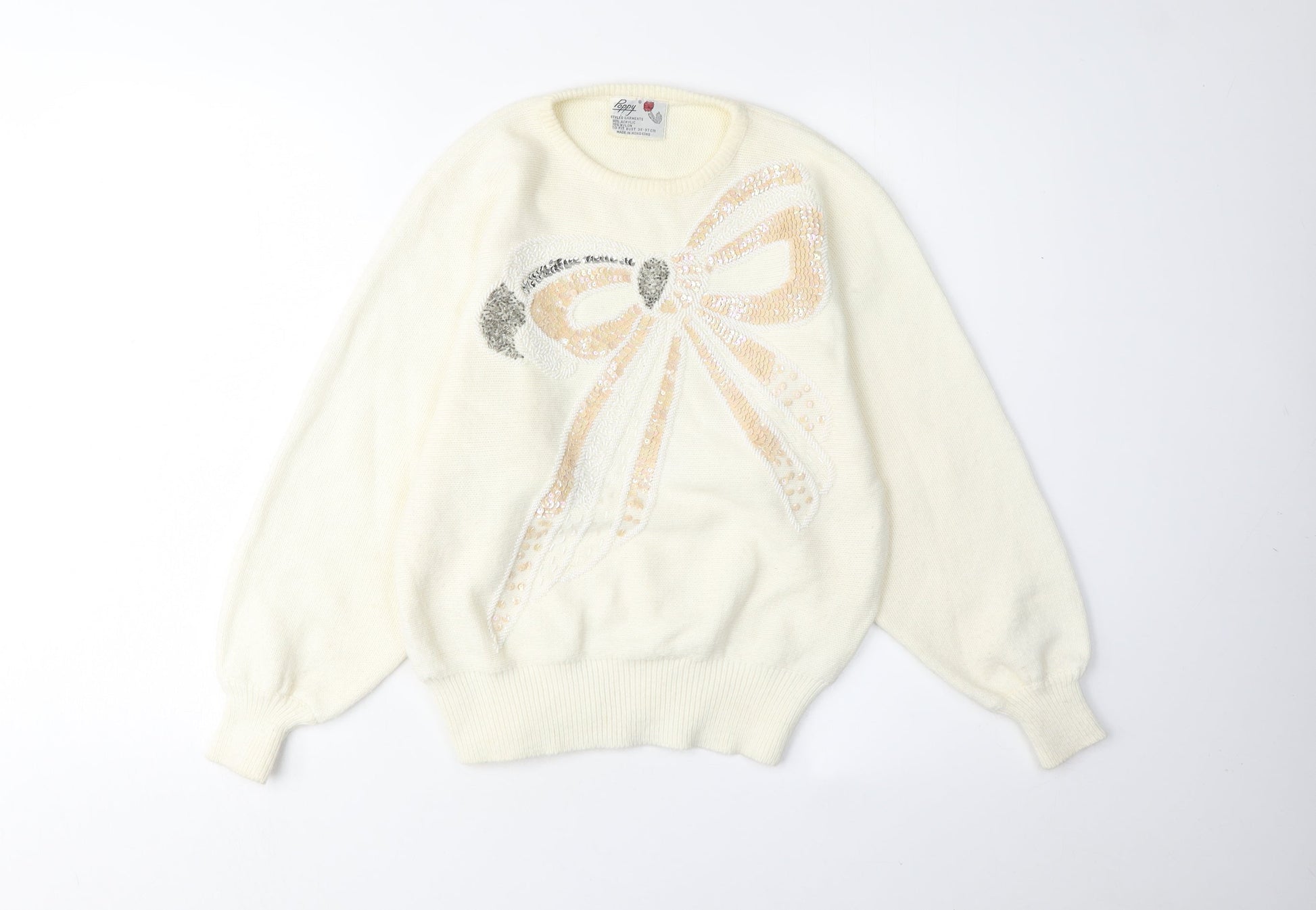 Poppy Women's Ivory Sequin Pullover Jumper L