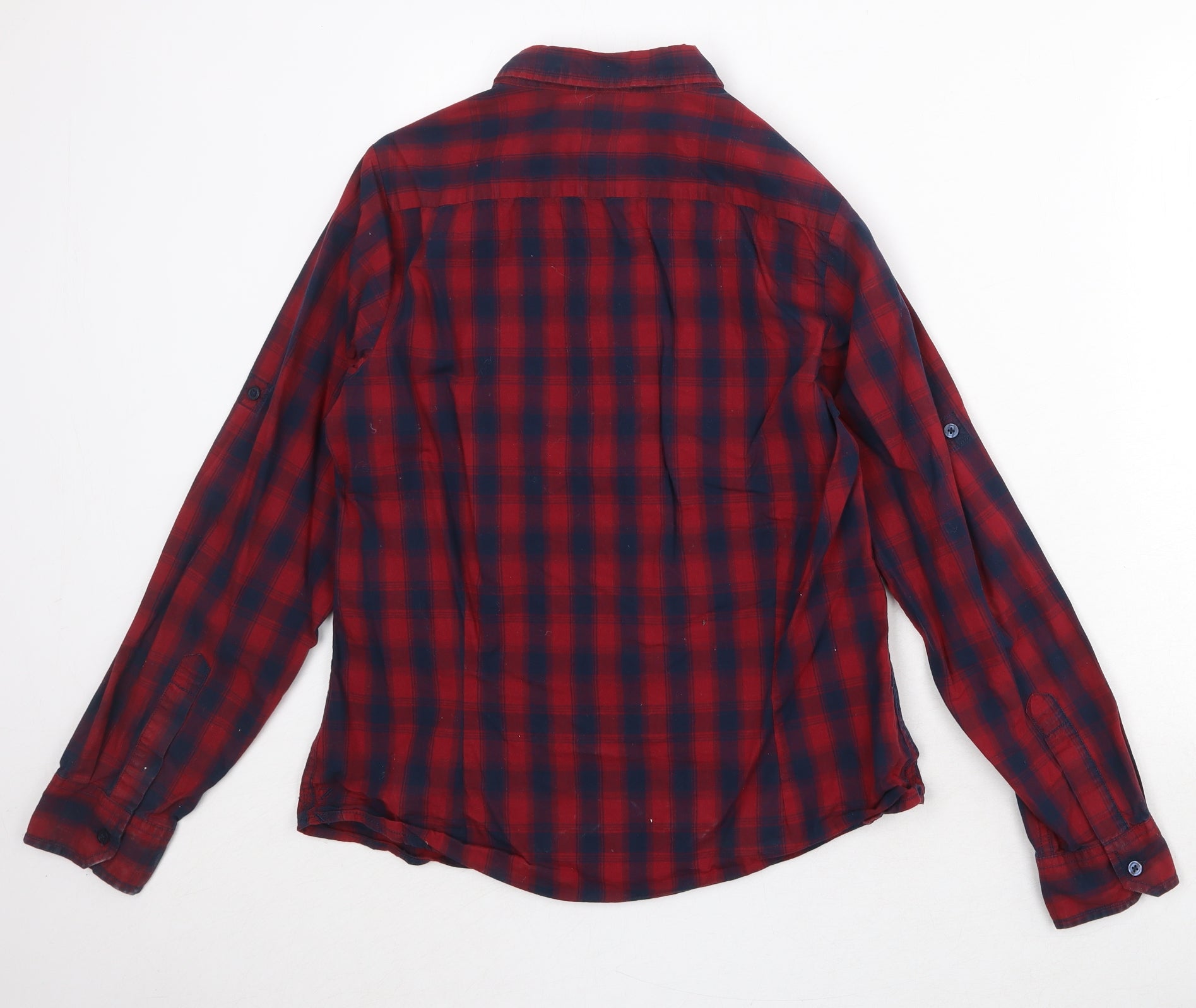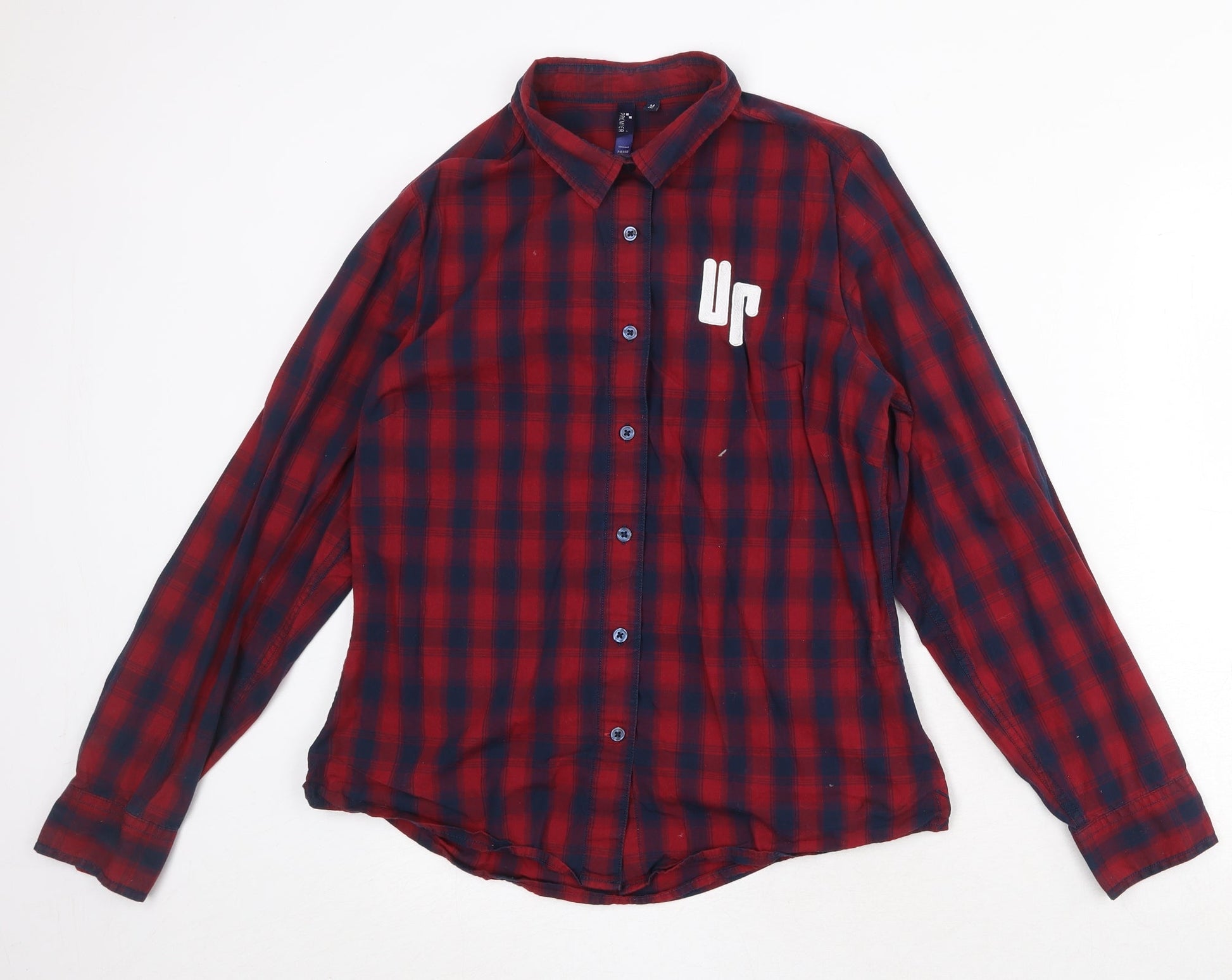 Premier Boys Red Plaid 100% Cotton Pullover Button-Up Size M Collared Button