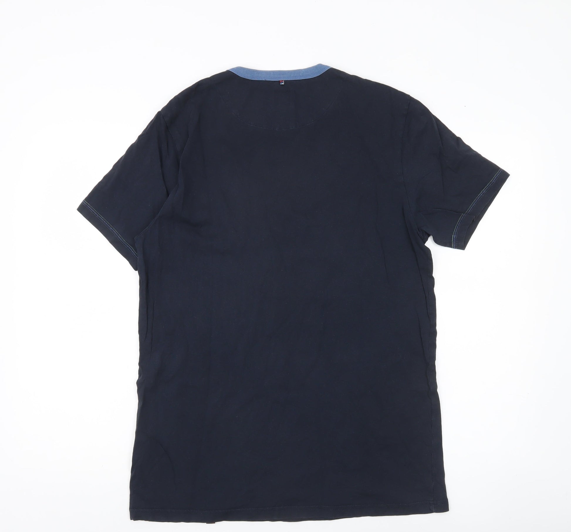 Pretty Green Men’s Navy Blue Crew Neck Cotton T-Shirt Size M Regular Fit