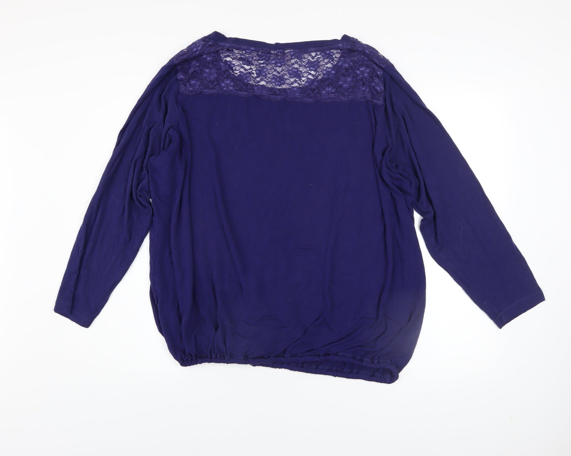 Pretty Secrets Womens Blue Lace Long Sleeve Plus Size Tunic Blouse UK 28/30