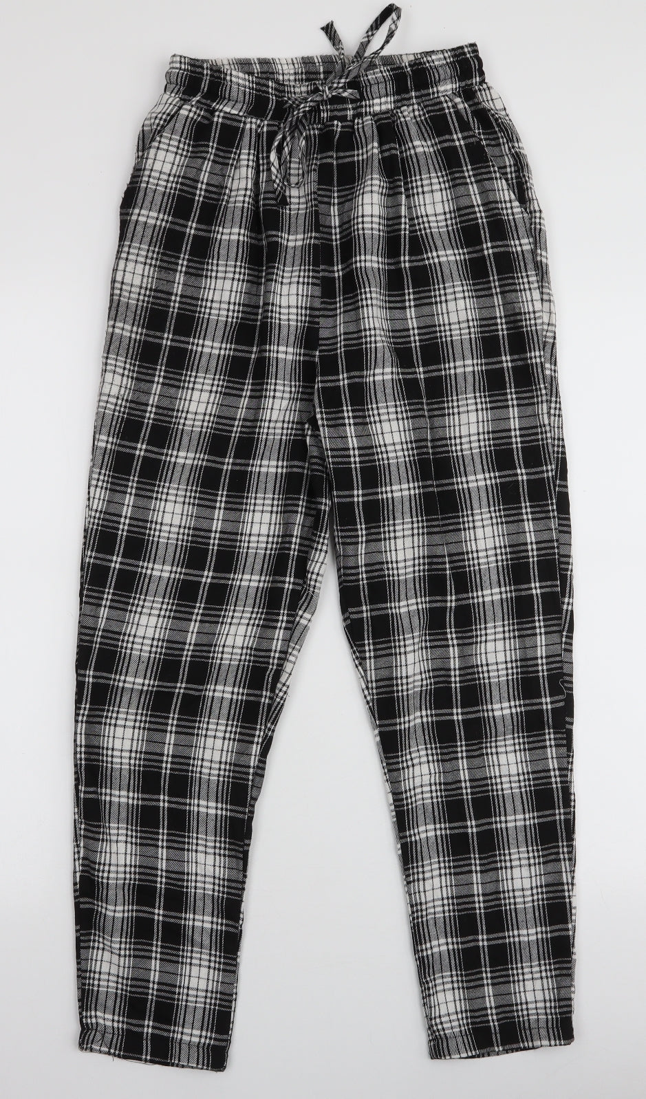 PRETTYLITTLETHING Womens Black Plaid Polyester Trousers Size 6 L25 in Slim Drawstring
