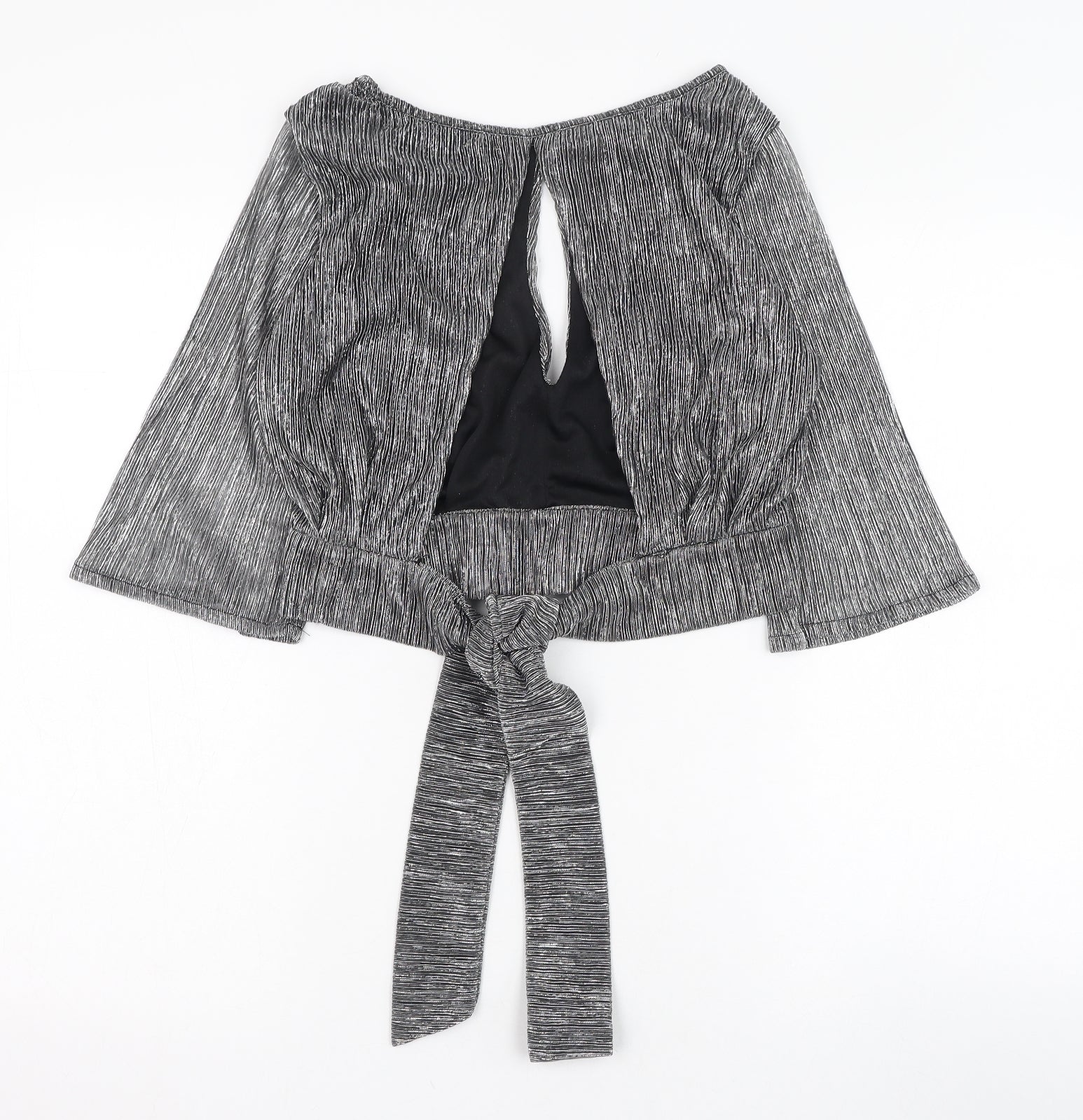 PRETTYLITTLETHING Womens Grey Polyester Cropped Blouse Size 8 Round Neck