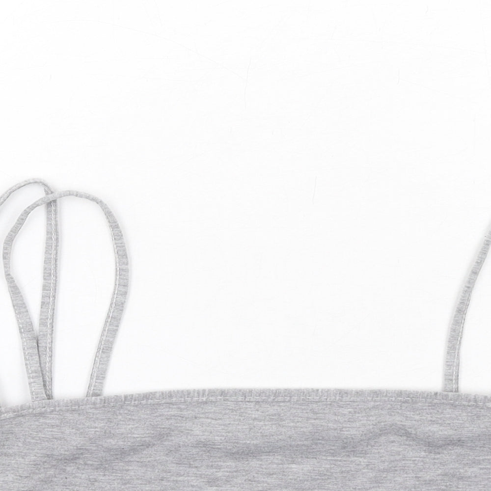 PRETTYLITTLETHING Womens Grey Viscose Cropped Tank Size 12 Square Neck