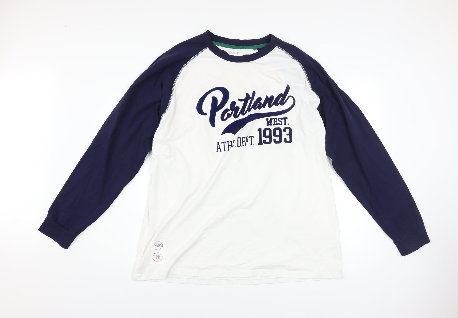 Primark Men's Blue White Long Sleeve Cotton Portland 2XL Graphic Top