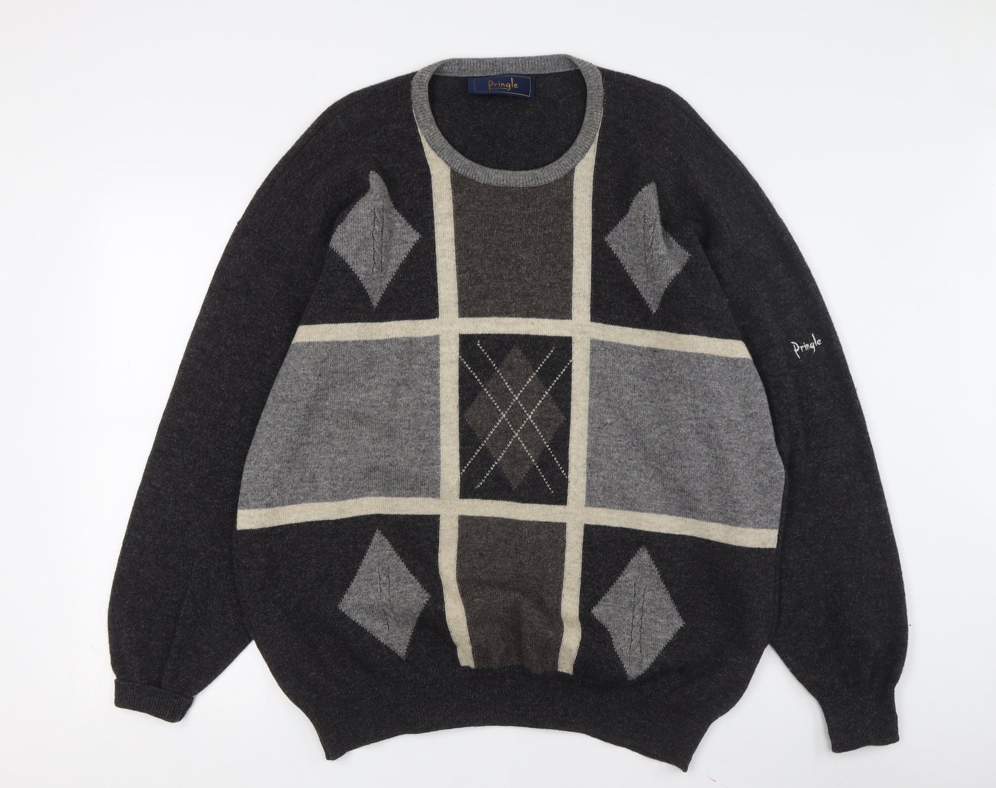 Pringle Men’s Grey Argyle Wool Pullover XL