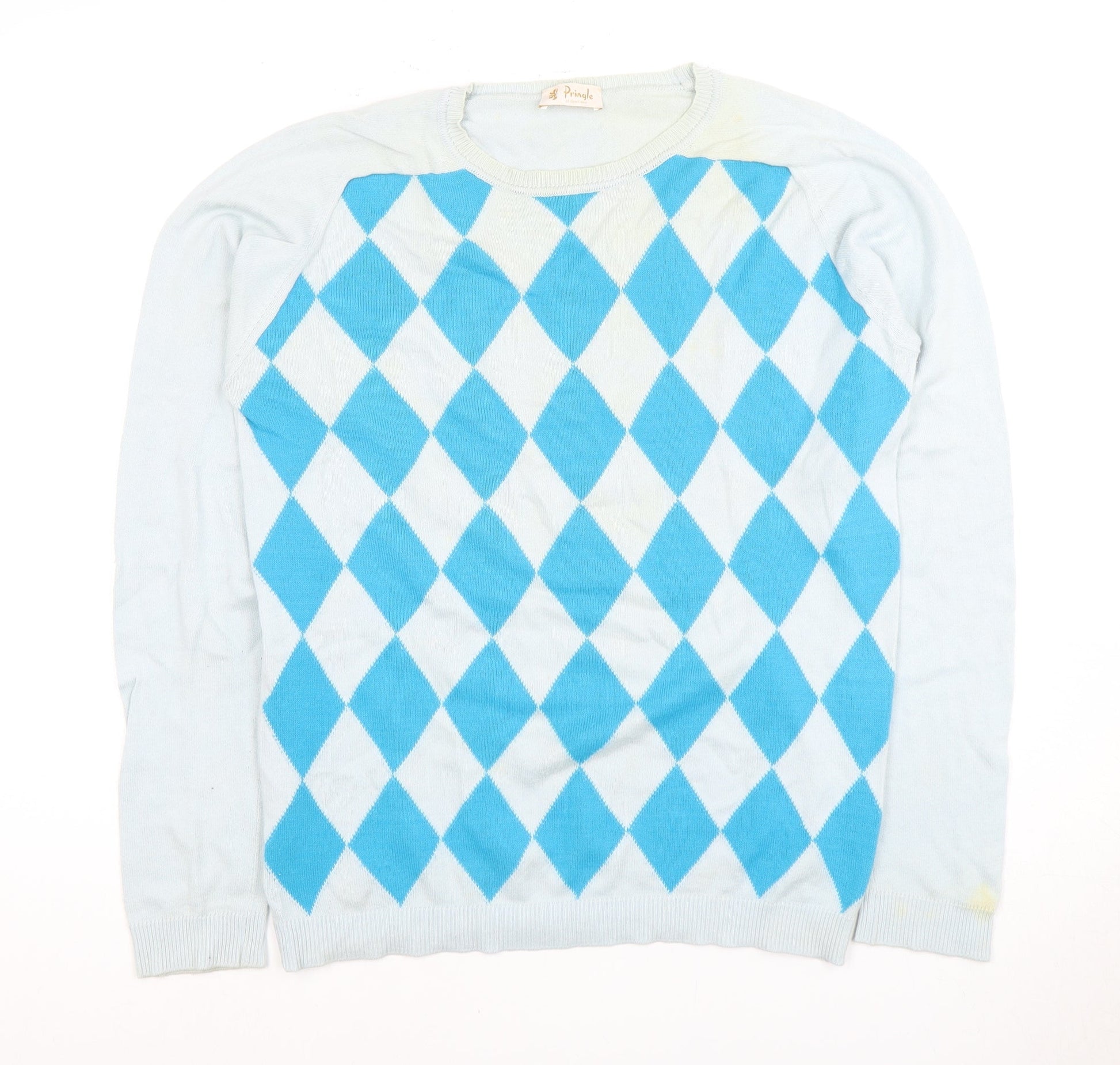 Pringle Men's Blue Argyle Pullover Jumper, Size S