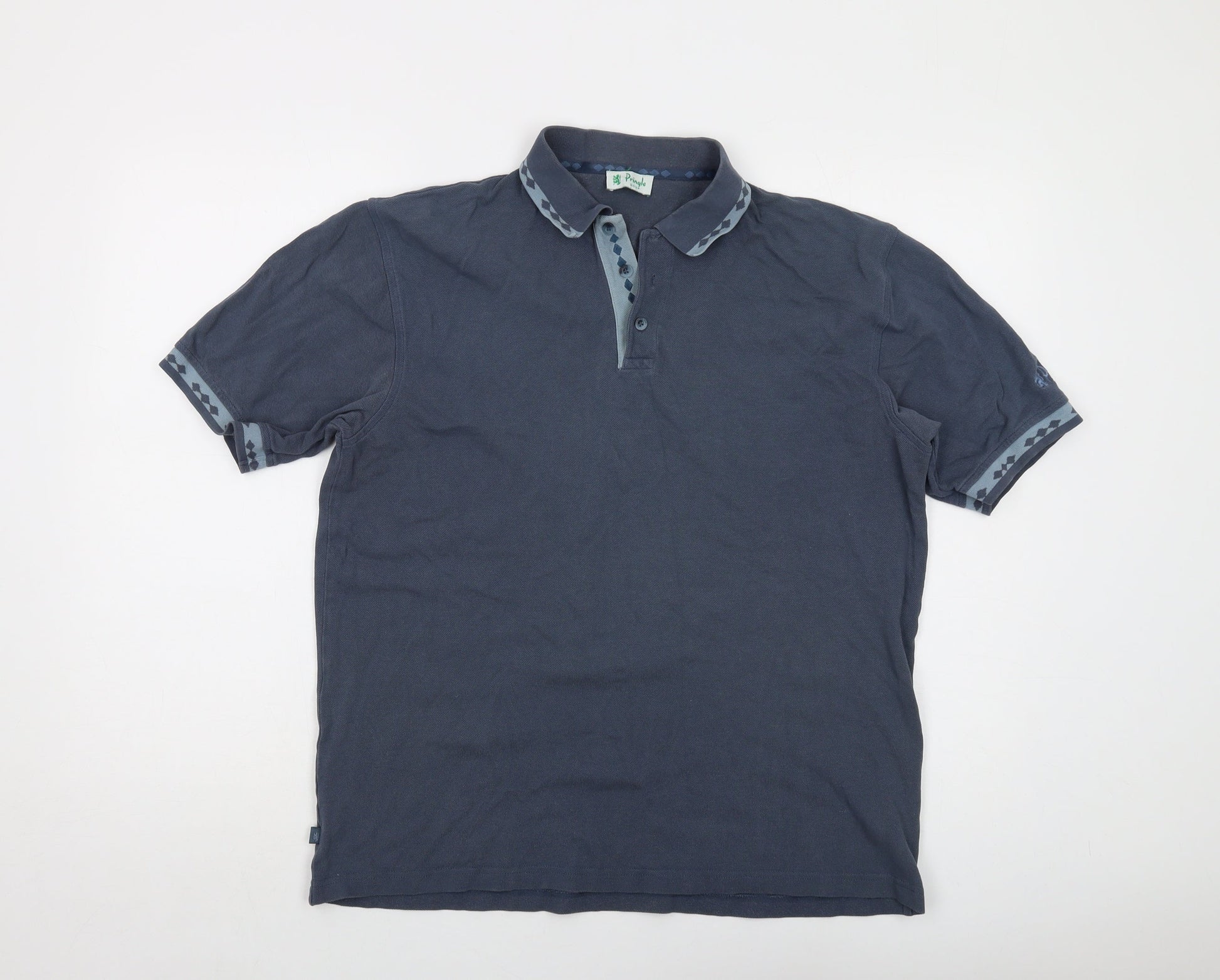 Pringle Mens Blue Cotton Polo Size M Collared Button