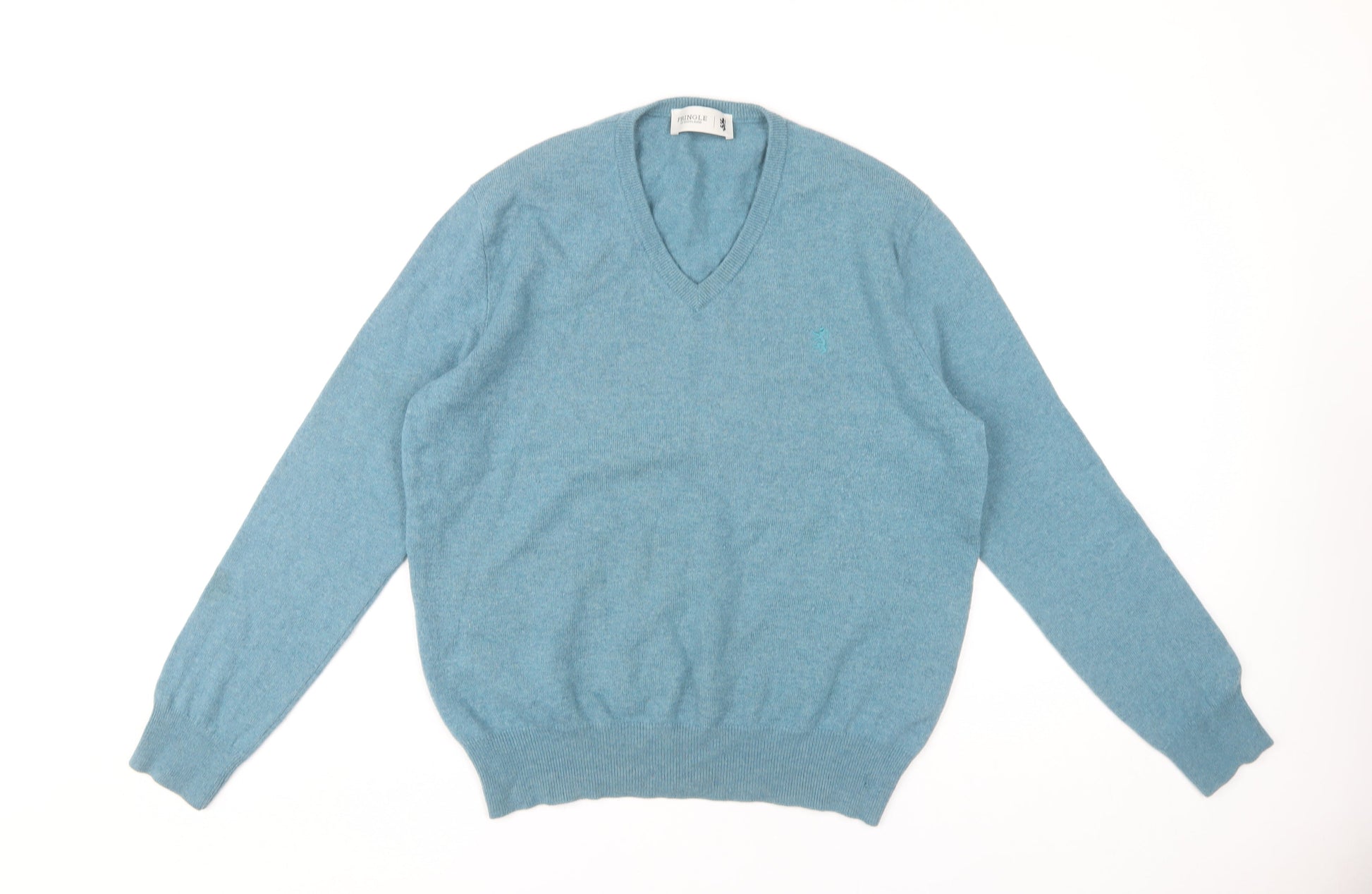 Pringle of Scotland Men's Blue Merino Wool V-Neck Jumper M