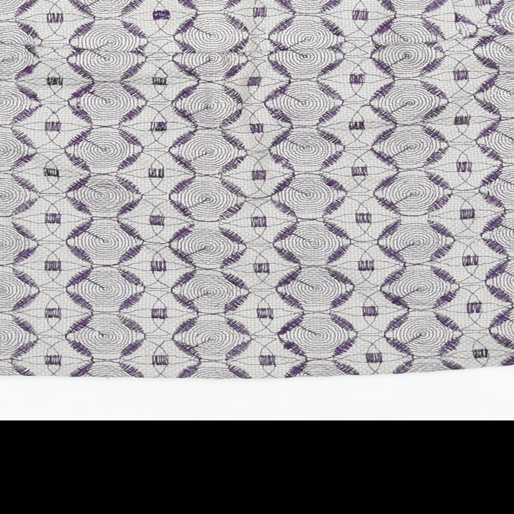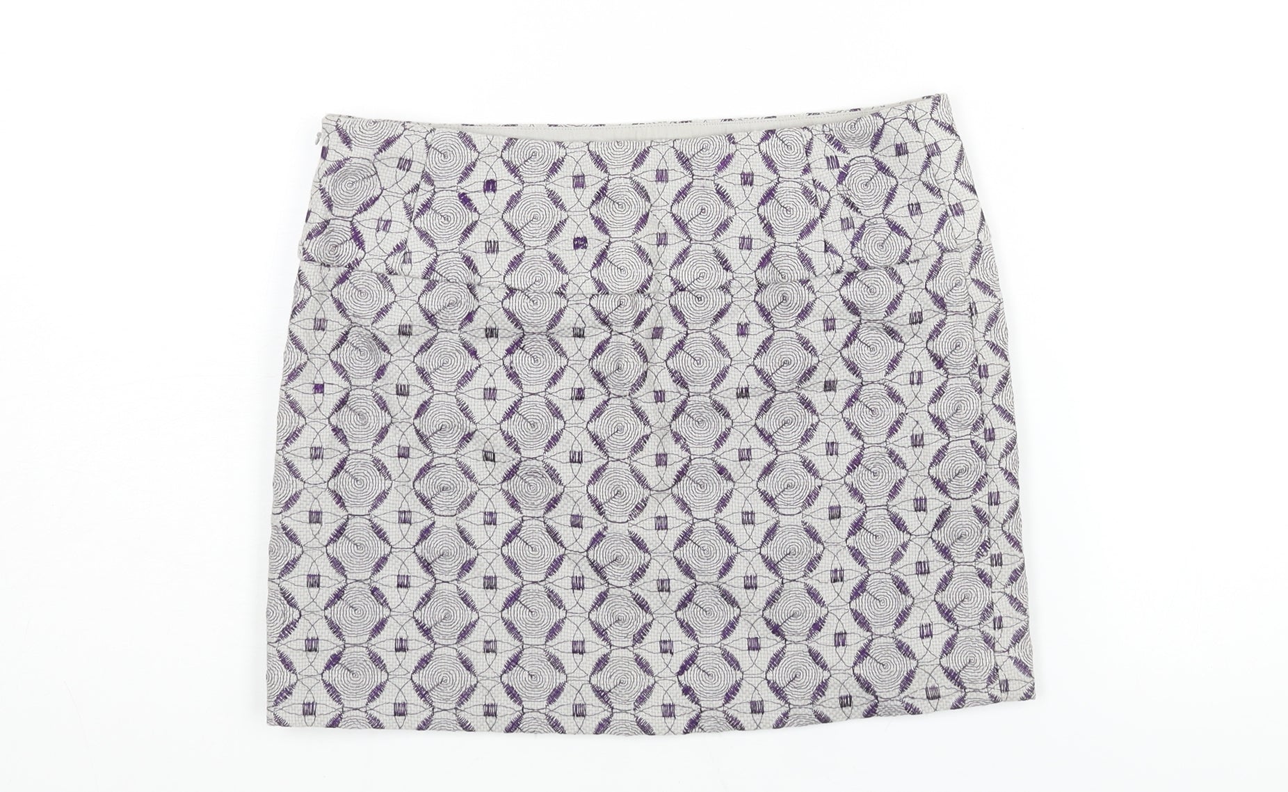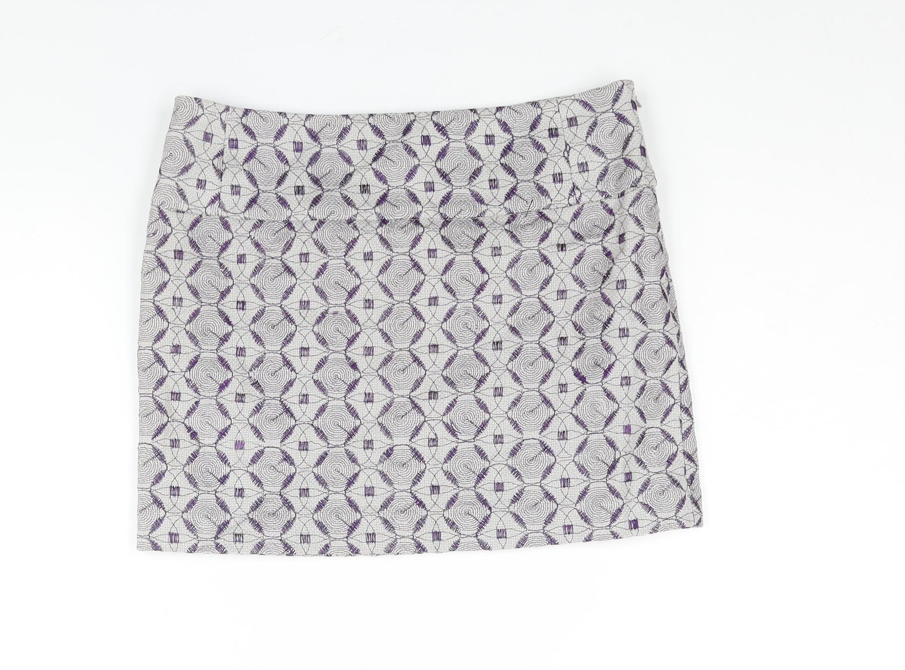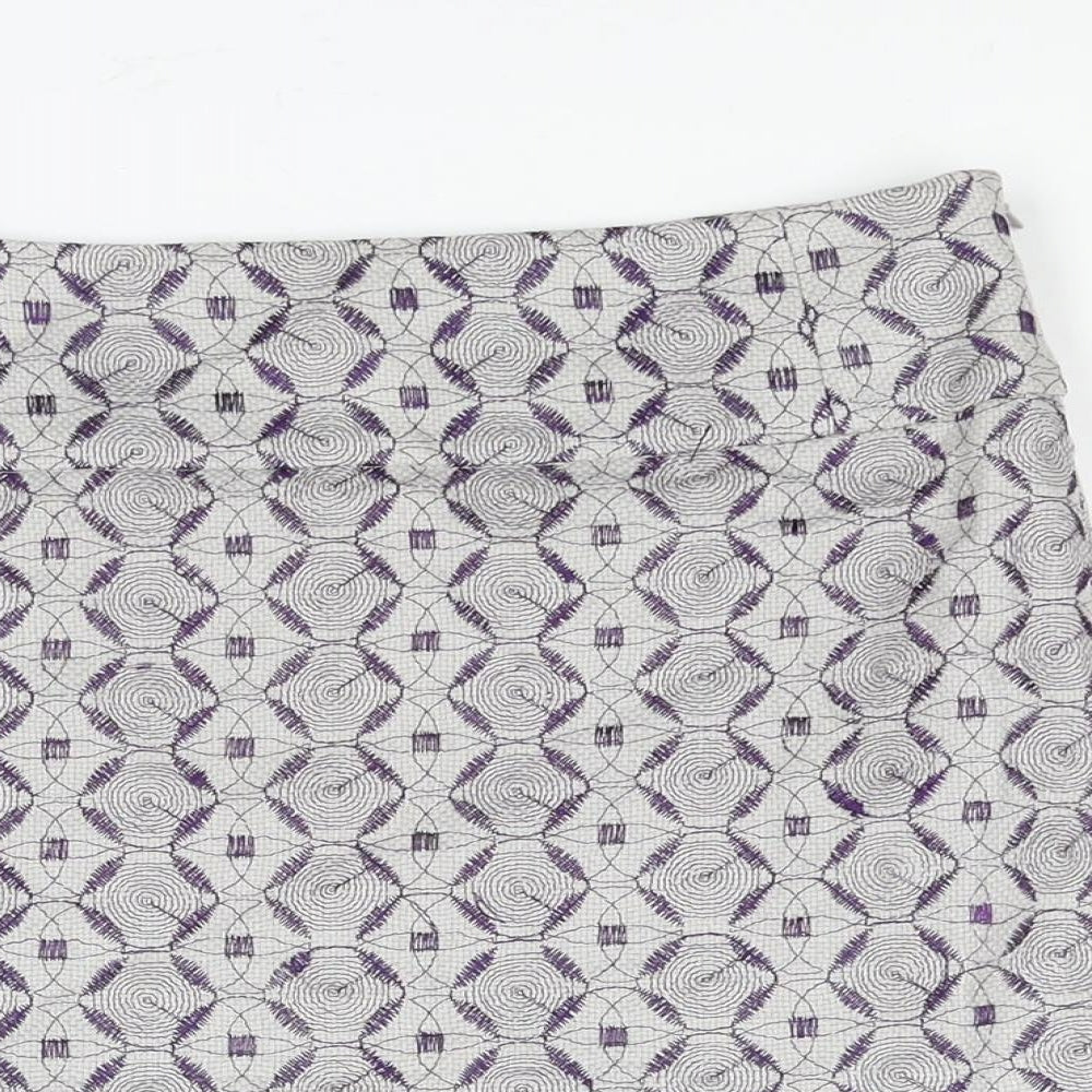 Pringle of Scotland Womens Grey Geometric Linen Mini Skirt Size 6 Zip - Embroidered