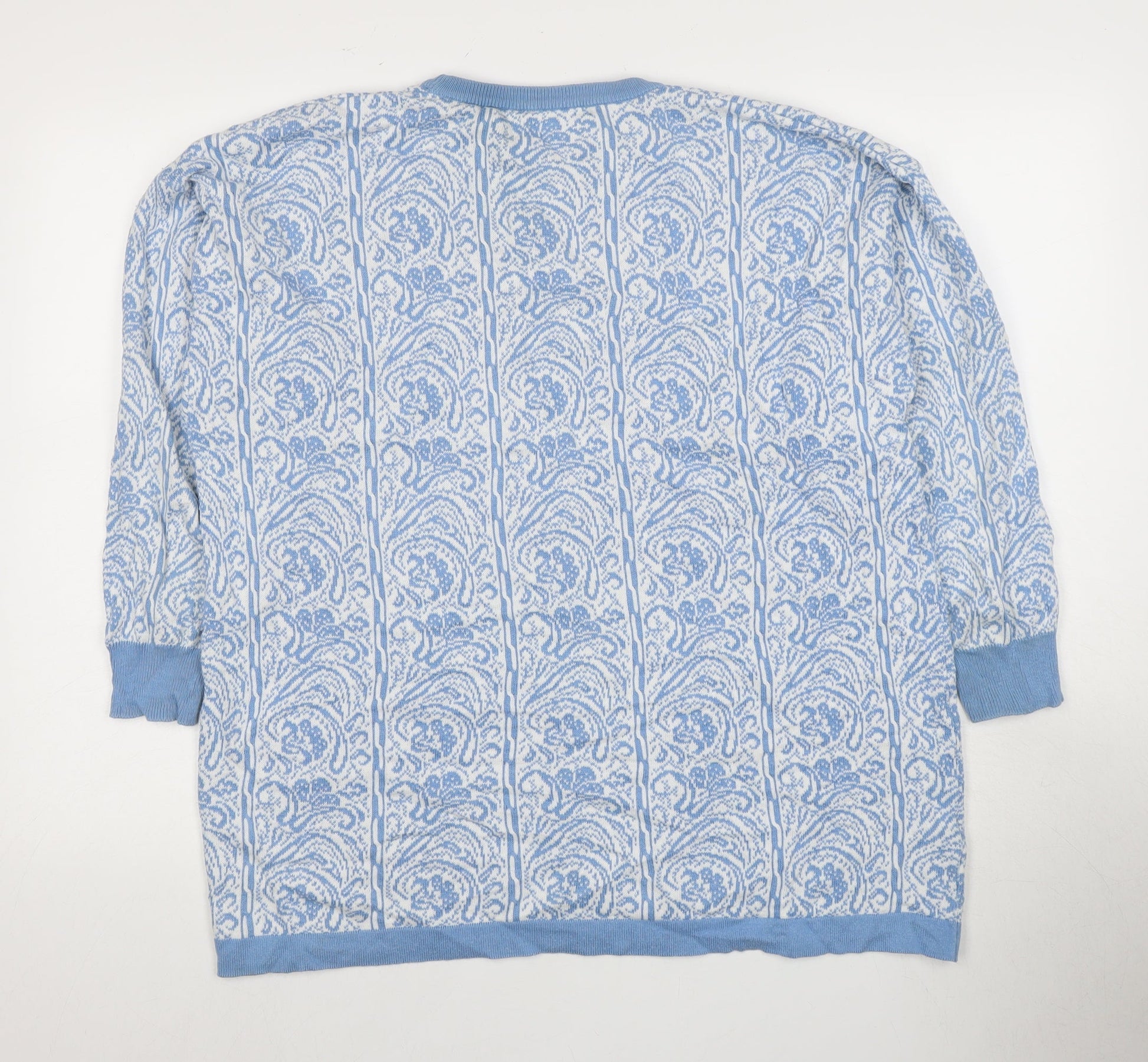Pringle Women's Blue Cotton Floral Pullover Jumper S