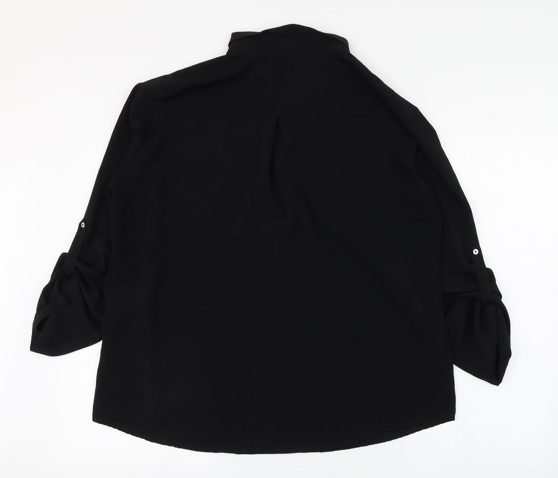 Privilege Womens Black Polyester Basic Button-Up Size 8 Collared