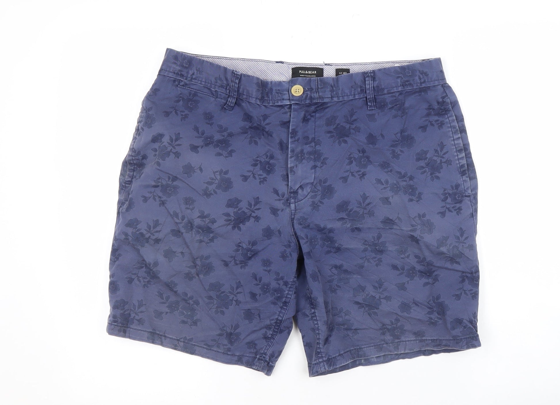 Pull&Bear Blue Floral Chino Shorts - Size 14