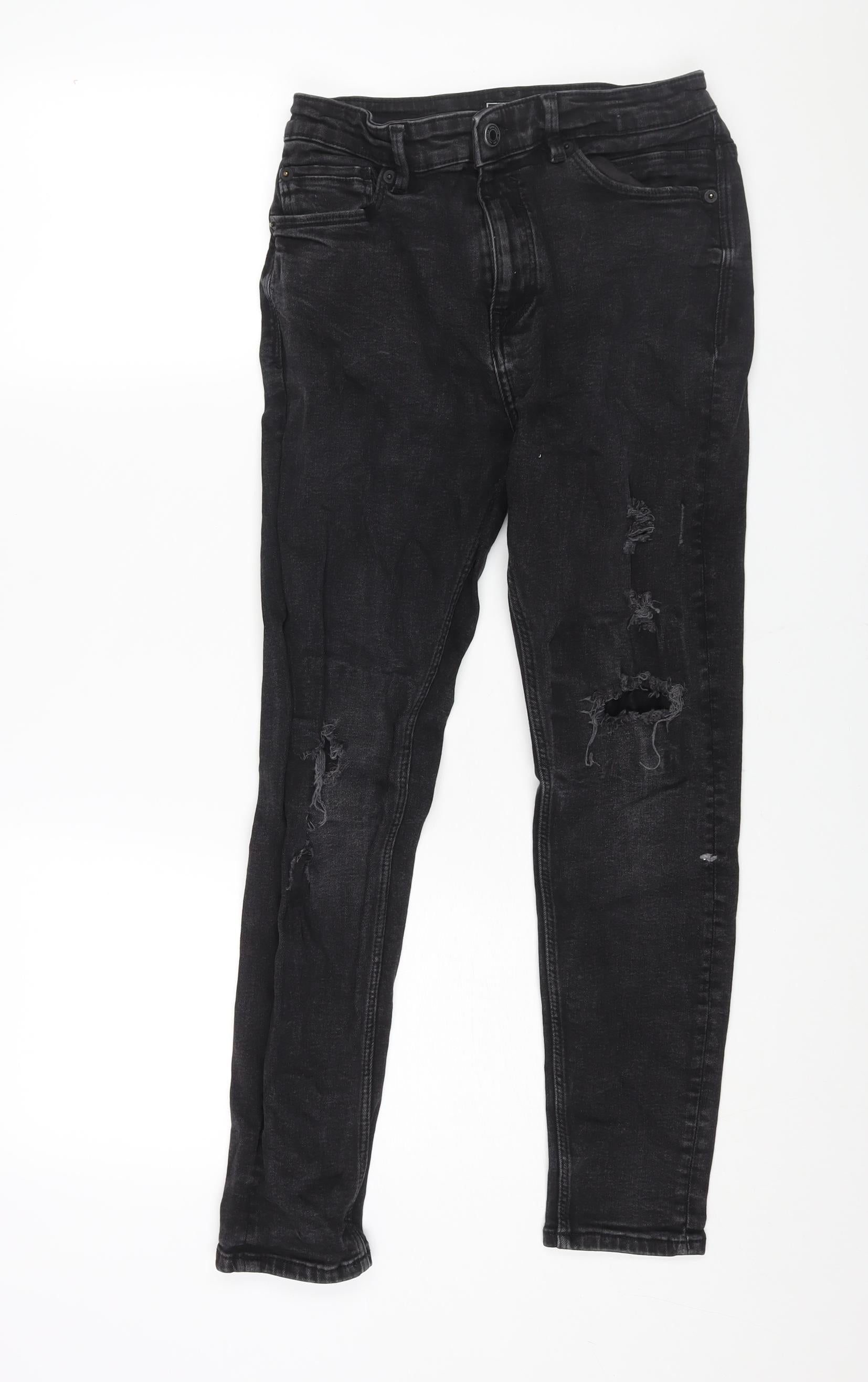 Pull&Bear Mens Black Cotton Skinny Jeans Size 30 in L26 in Regular Zip