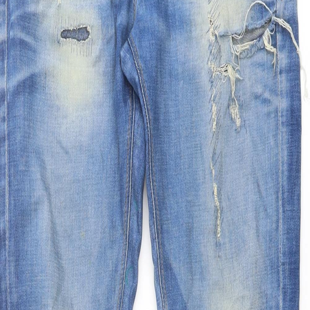 Pull&Bear Mens Blue Cotton Straight Jeans Size 30 in L31 in Regular Button