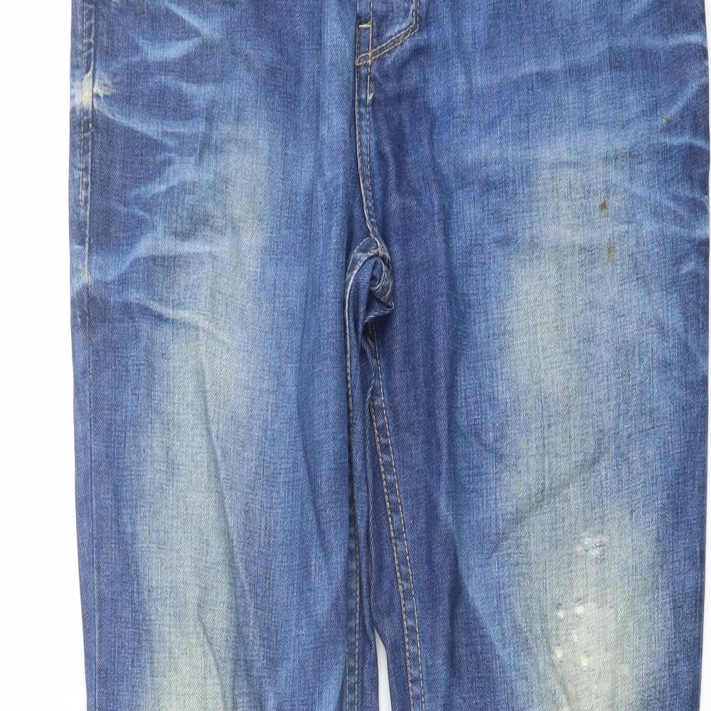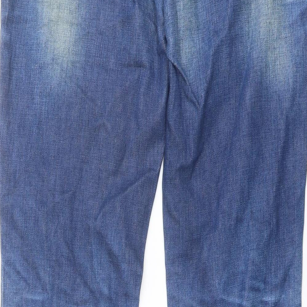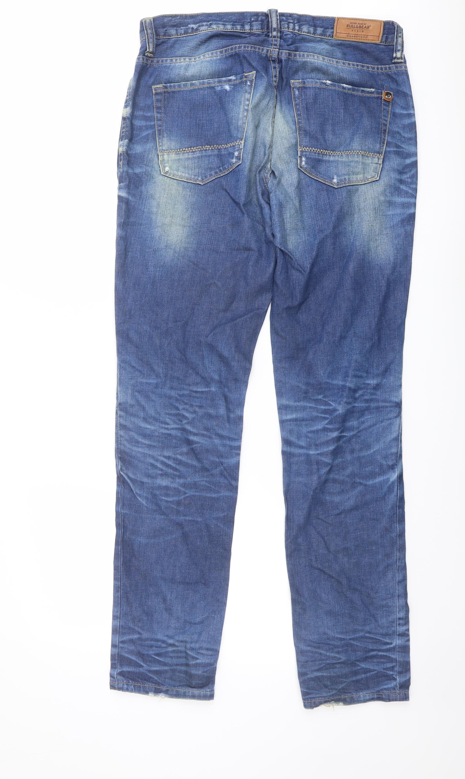 Pull&Bear Mens Blue Cotton Straight Jeans Size 32 in L32 in Regular Button