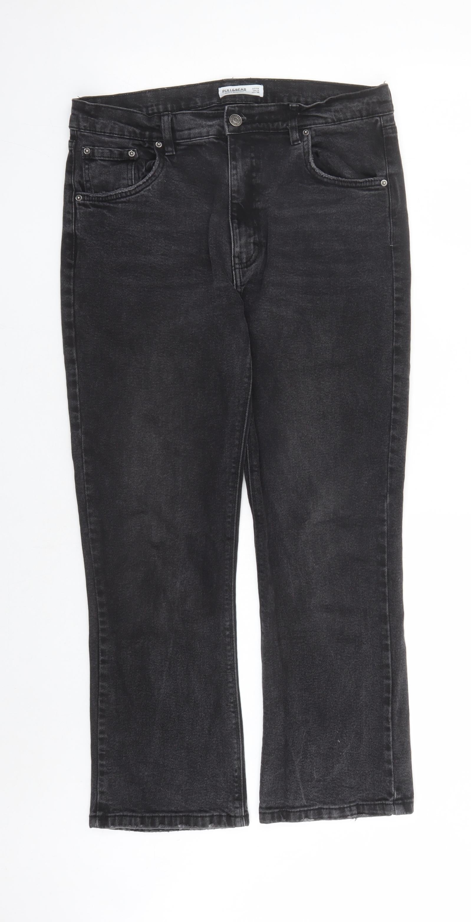 Pull&Bear Womens Black Cotton Bootcut Jeans Size 16 L27 in Regular Zip - Pockets
