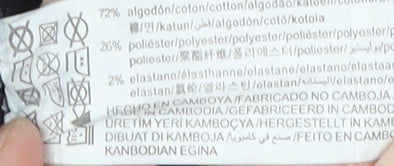 - Material Breakdown: 72% Cotton 26% Polyester 2% Elastane