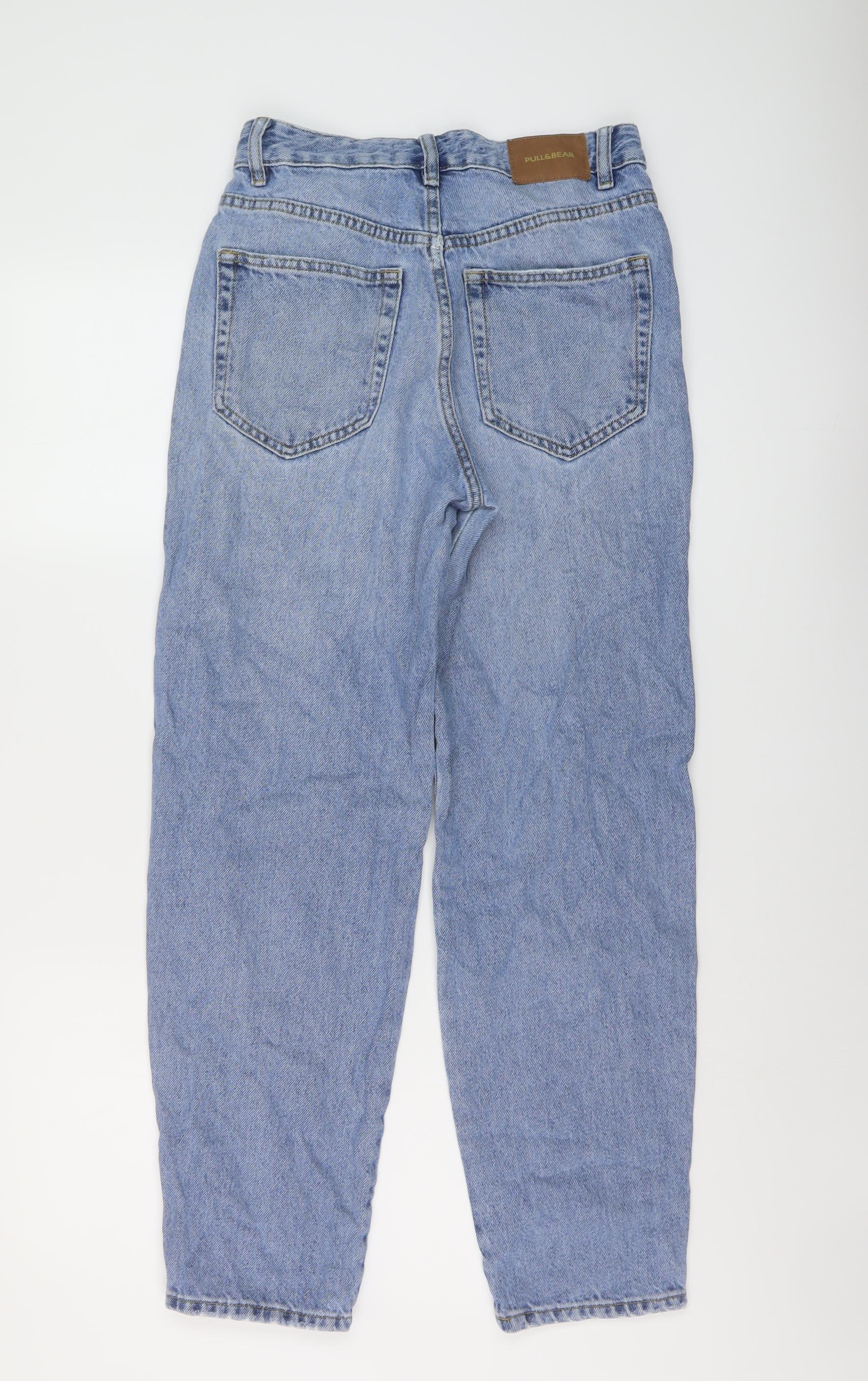 Pull&Bear Womens Blue Cotton Mom Jeans Size 6 L28 in Regular Button