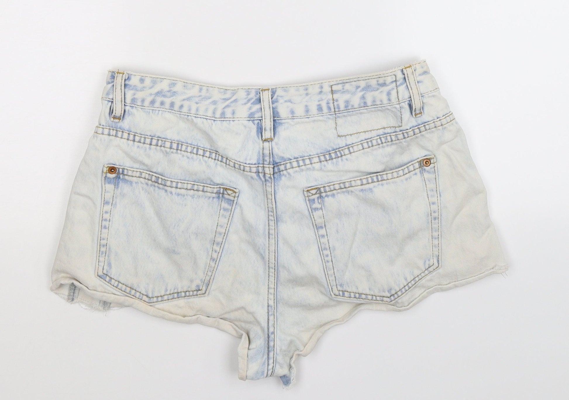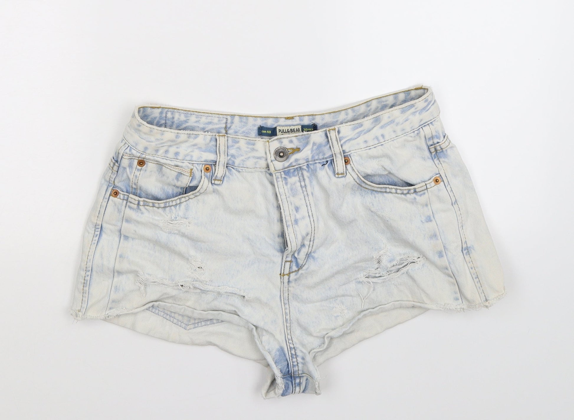 Pull&Bear Womens Blue Denim Hot Pants Shorts Size 30 in - Distressed