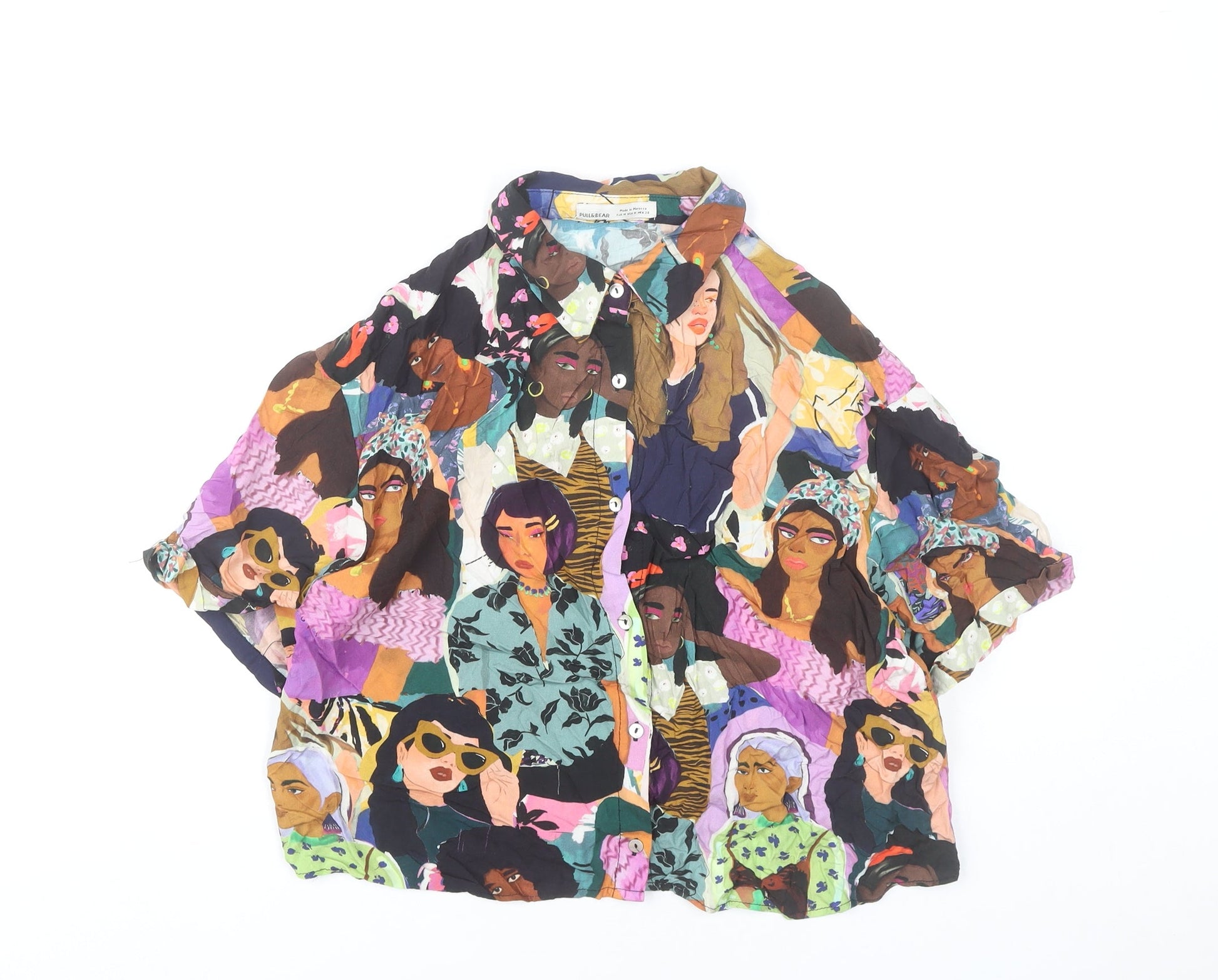Pull&Bear Womens Multicoloured Art Print Button-Up Shirt Size 12