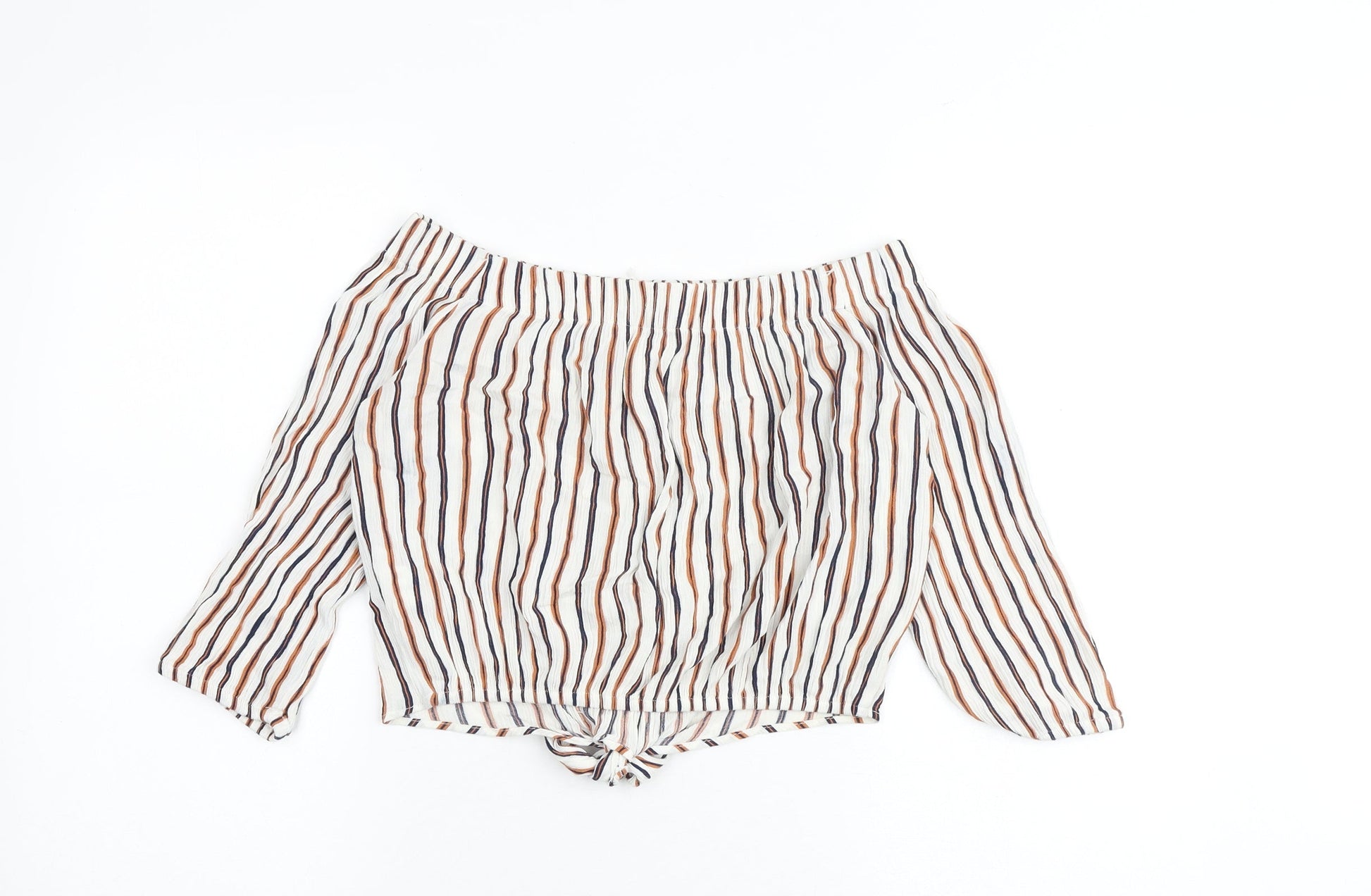 Pull&Bear Womens Multicoloured Striped Viscose Basic Blouse Size M Off the Shoulder