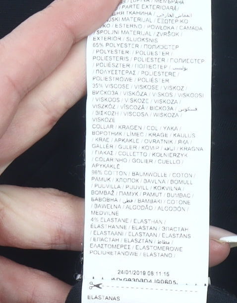 - Material Breakdown: 65% Polyester 35% Viscose 96% Cotton 4% Elastane