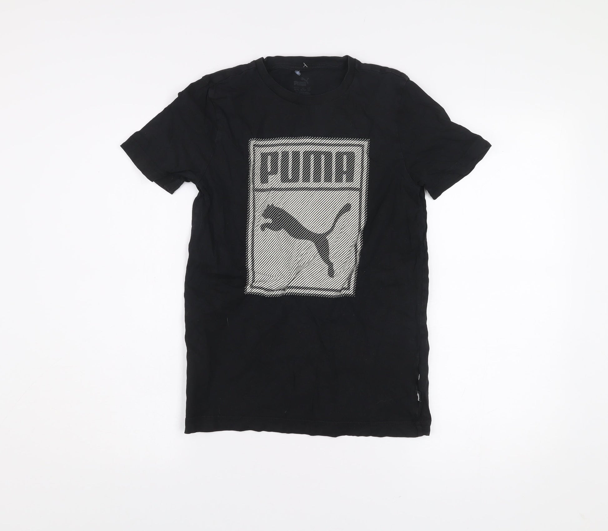 Puma Boys Black Graphic Logo T-Shirt 14 Years Short Sleeve Cotton Blend