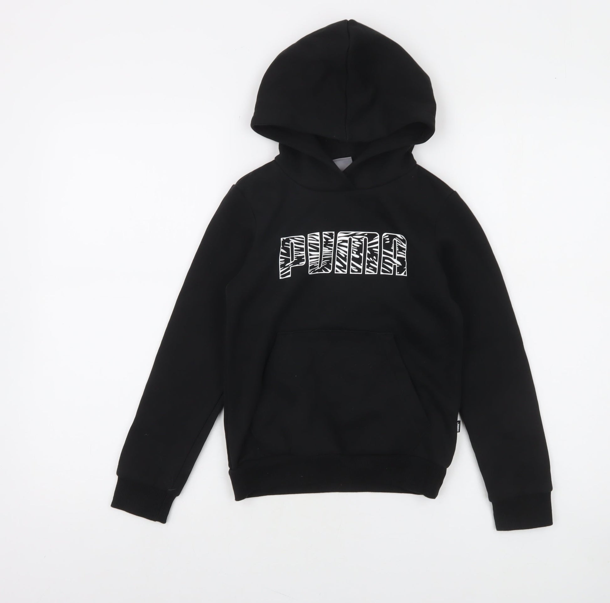 Puma Boys Black Pullover Hoodie 9-10 Years Graphic Print Kangaroo Pocket
