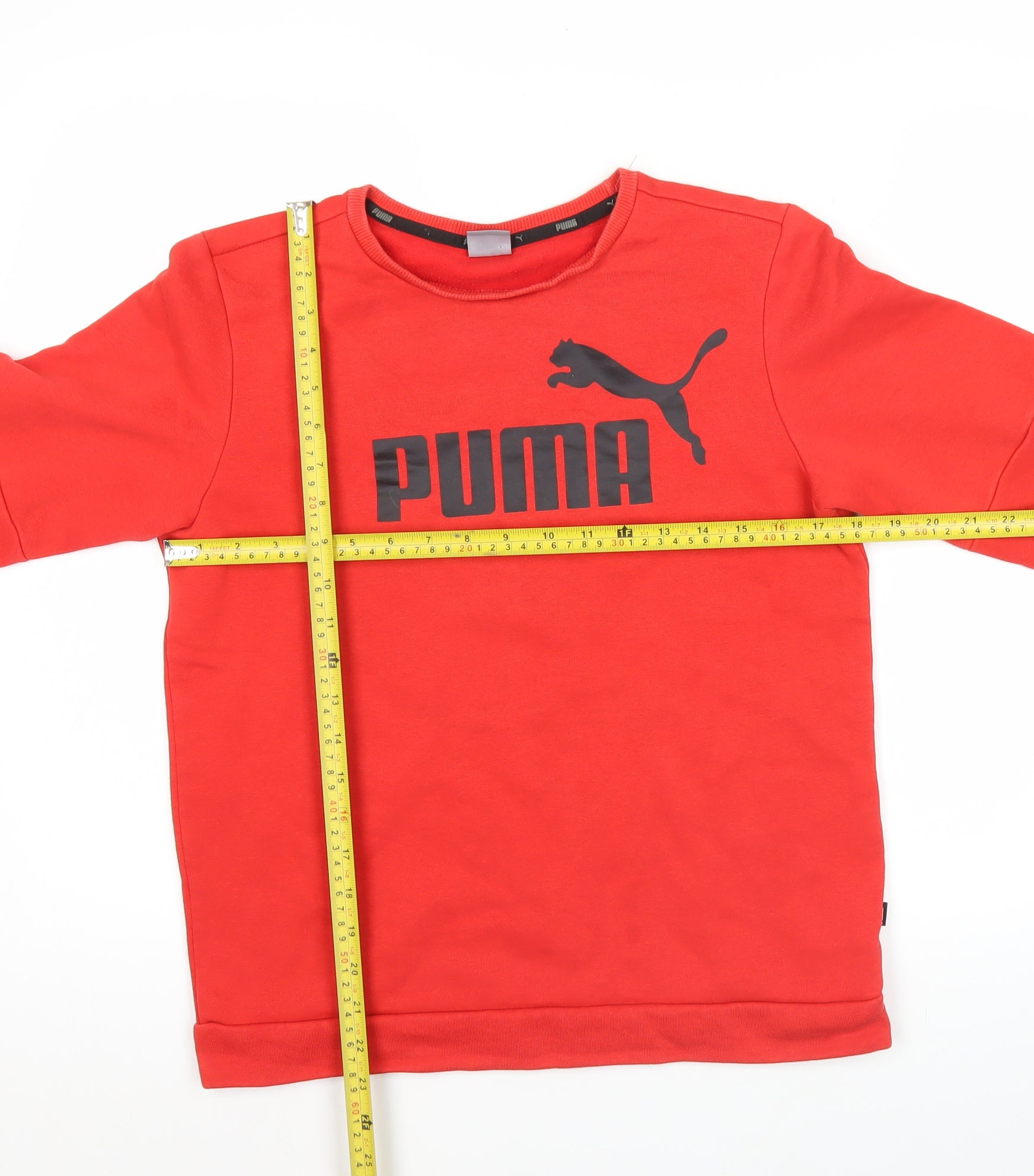 Puma Boys Red Sweatshirt 13-14 Years Crew Neck Pullover Logo Print