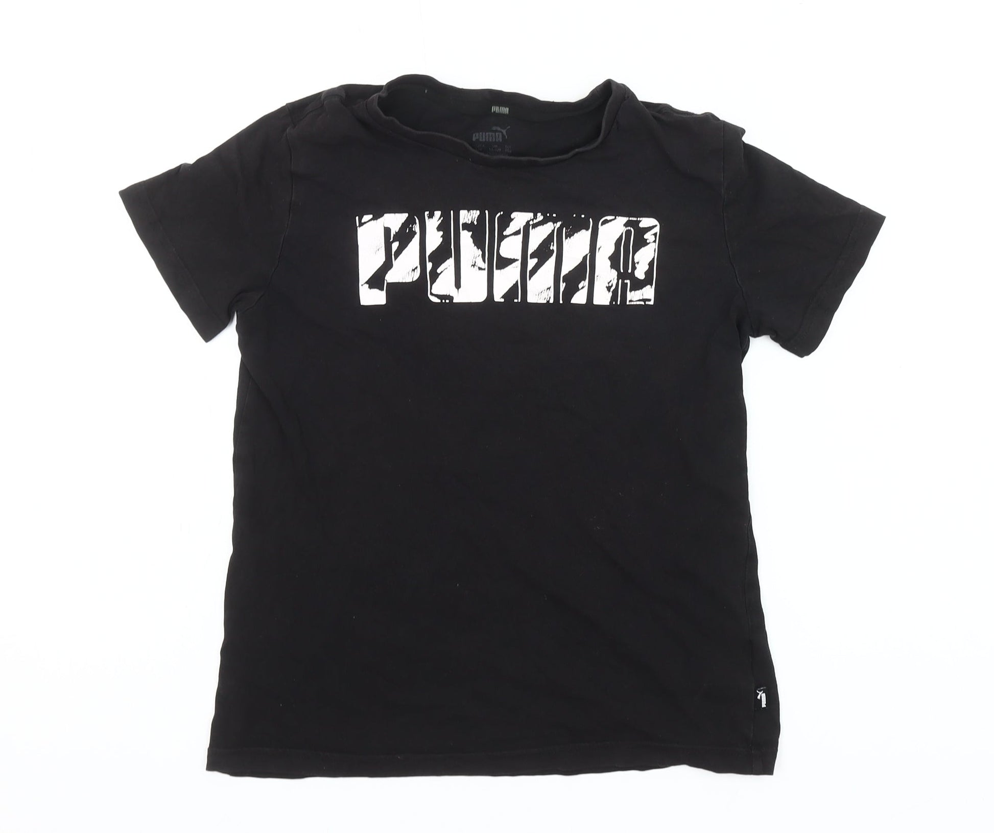Puma Girls Black Logo Graphic T-Shirt 10-11 Years Short Sleeve Casual Top