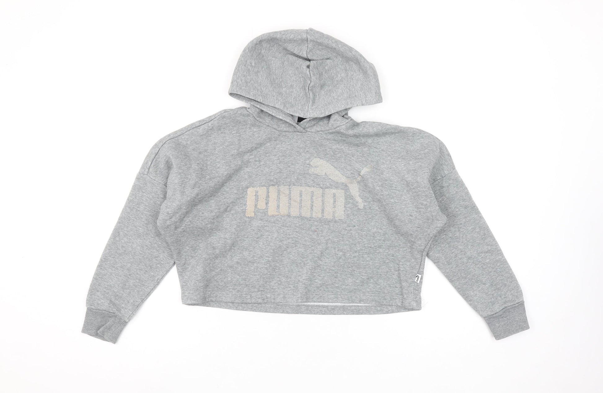 Puma Girls Grey Pullover Hoodie 9-10 Years Logo Fleece Sweatshirt