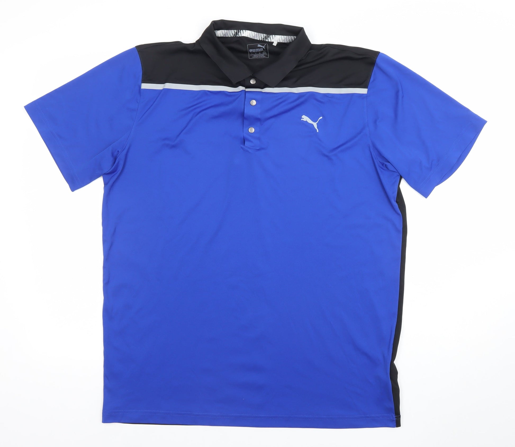 Puma Men Blue Black Colourblock Golf Polo Shirt Size L