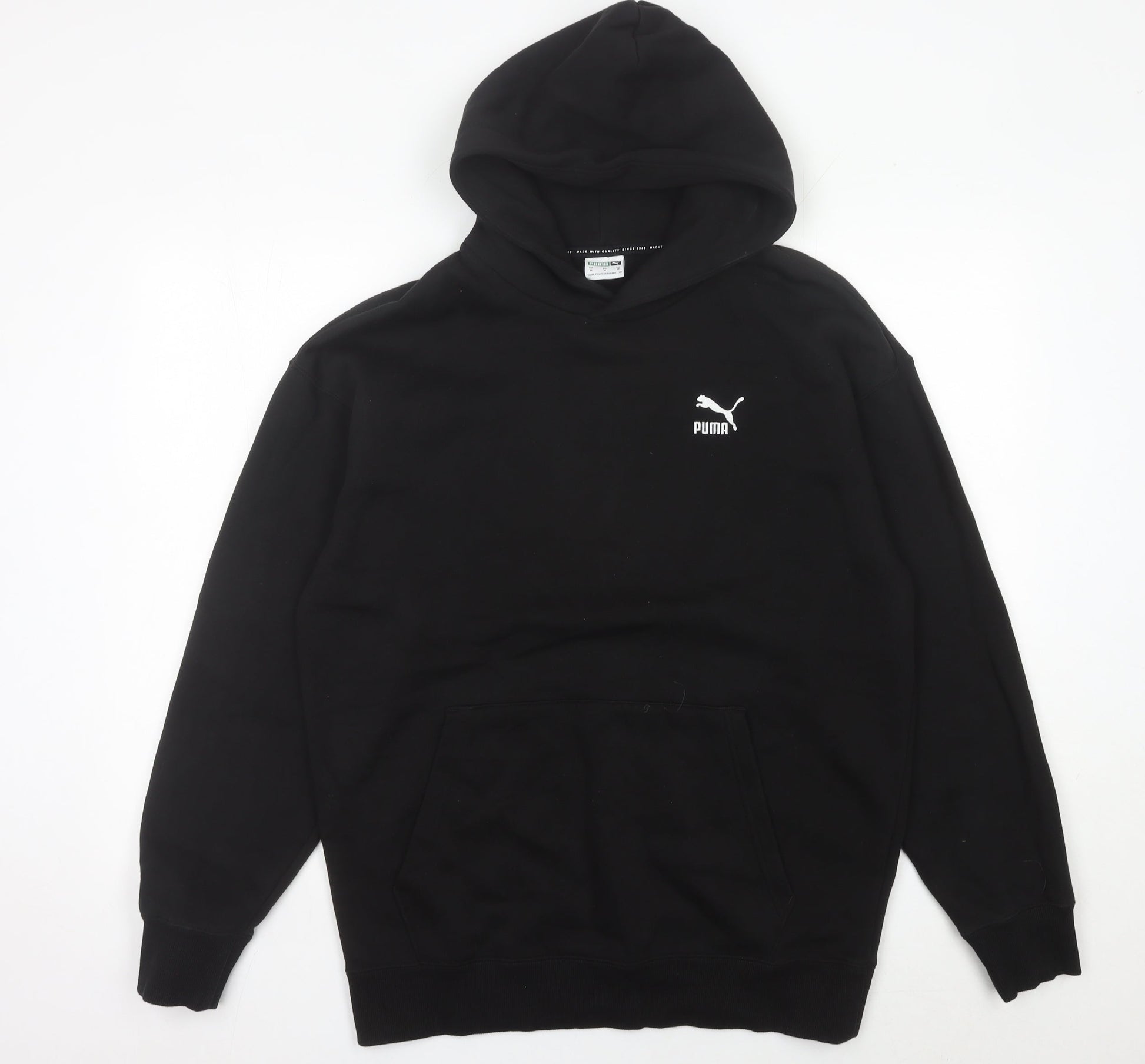 Puma Men’s Black Pullover Hoodie Size M Logo Fleece Sweatshirt
