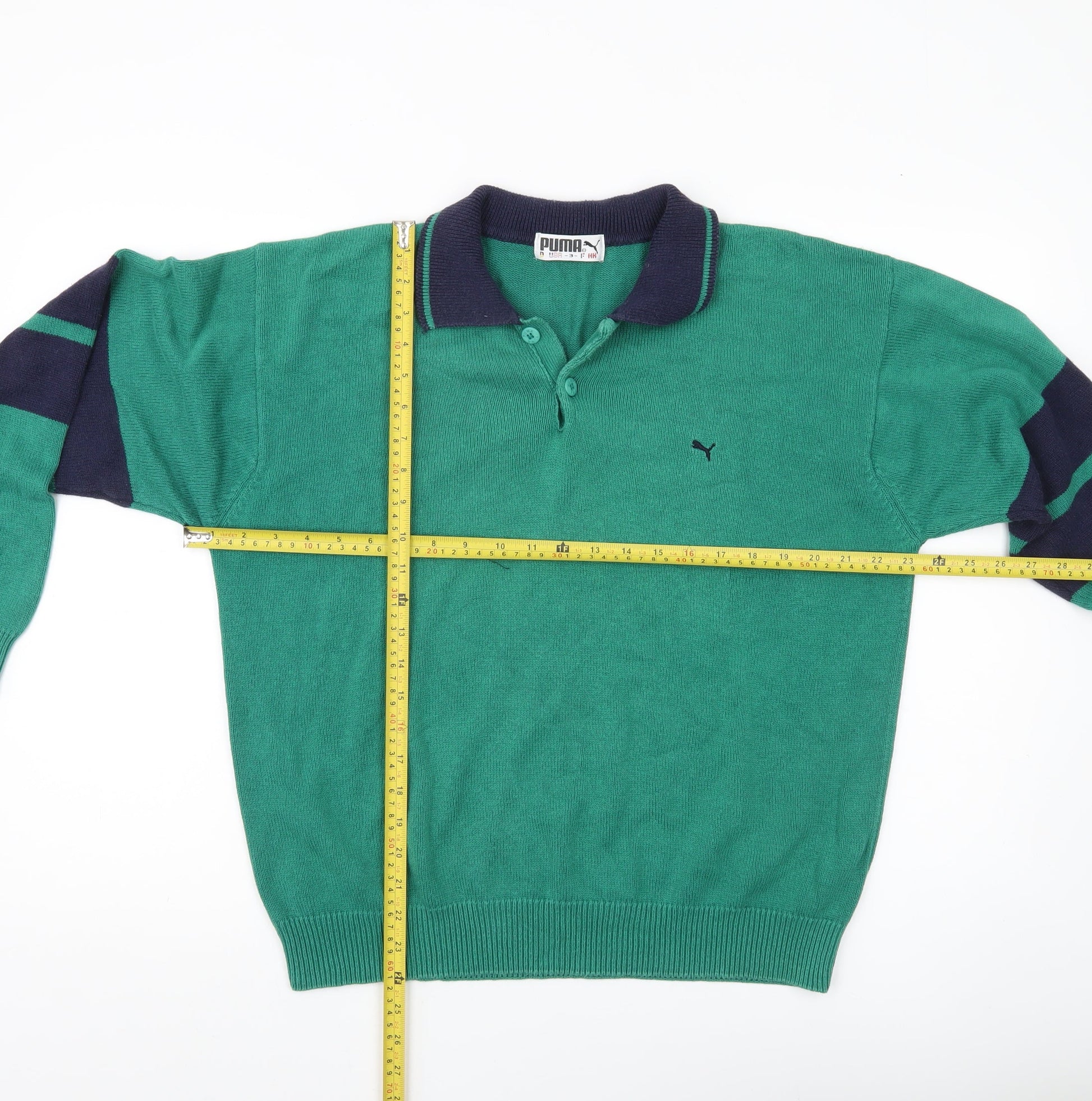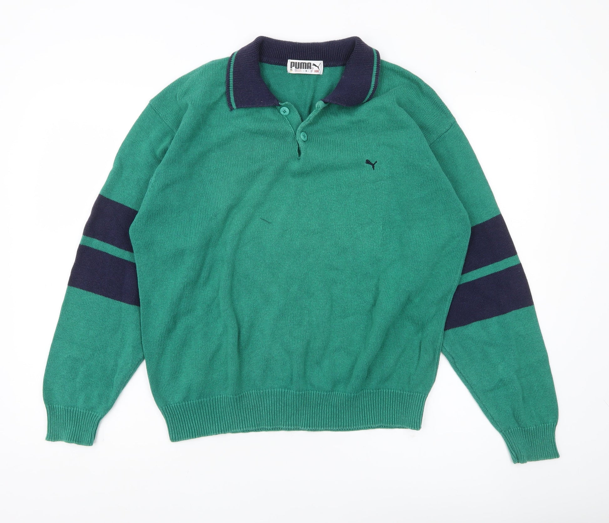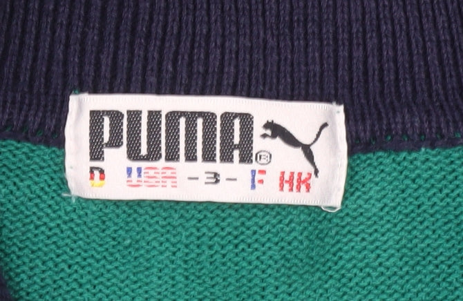 Puma Men’s Green Collared Pullover Jumper M Retro Sports Knitwear
