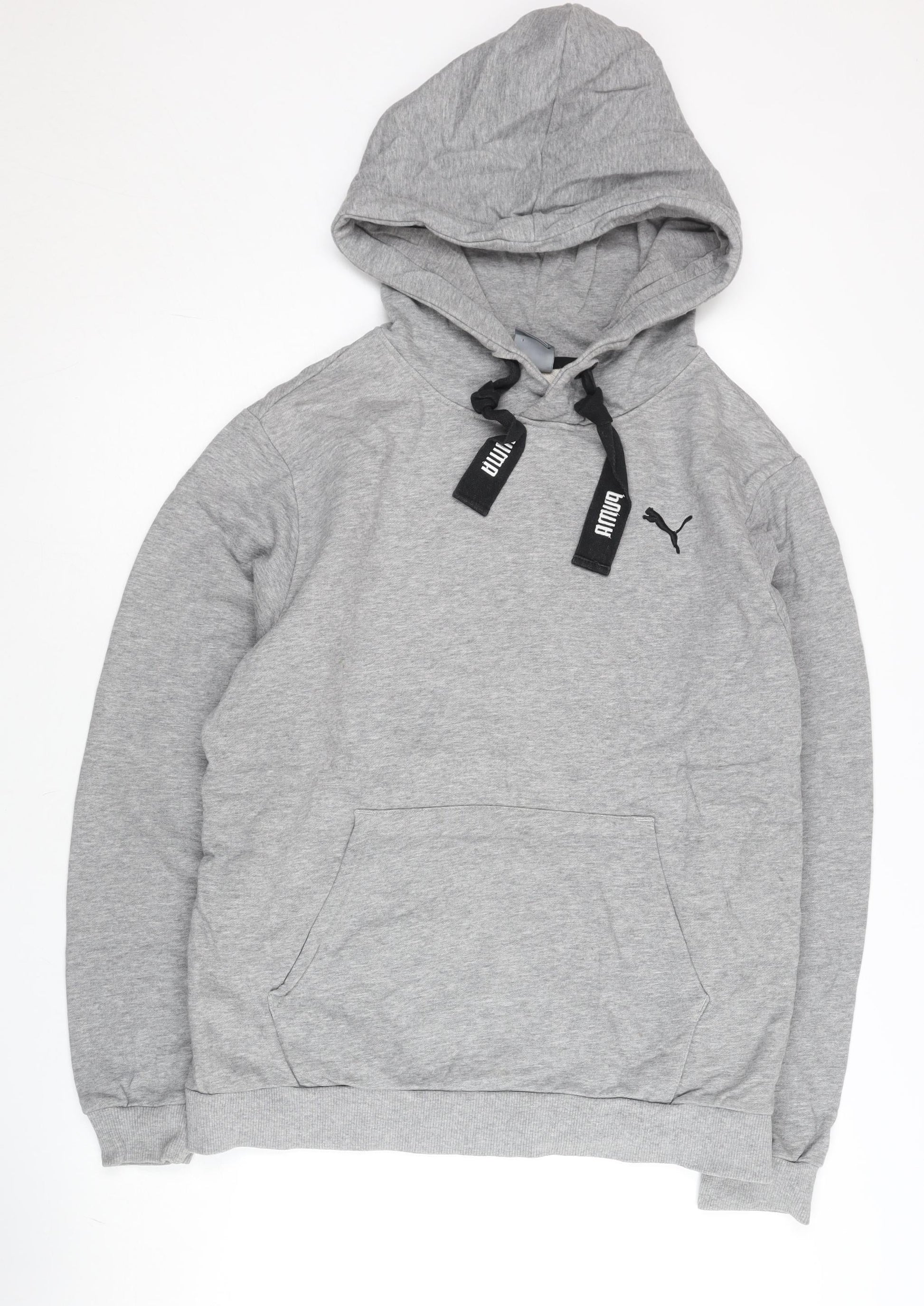 Puma Men’s Grey Pullover Hoodie Medium Regular Fit Cotton Blend