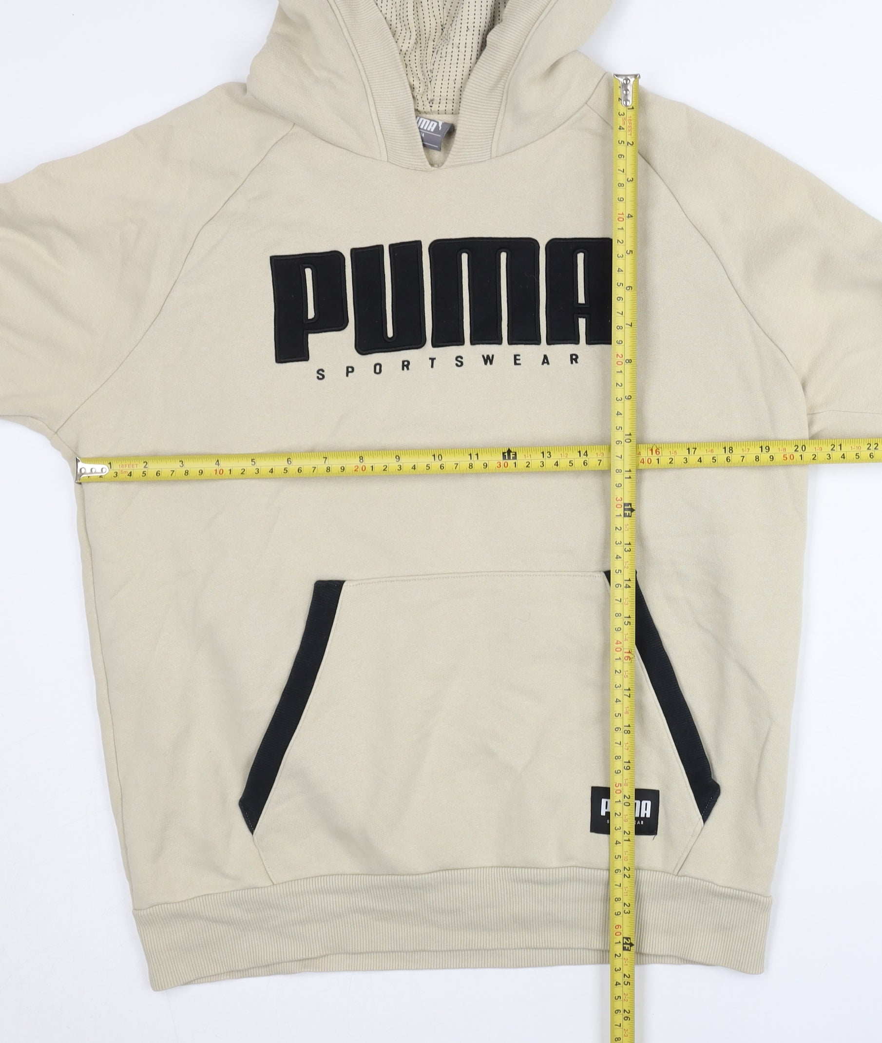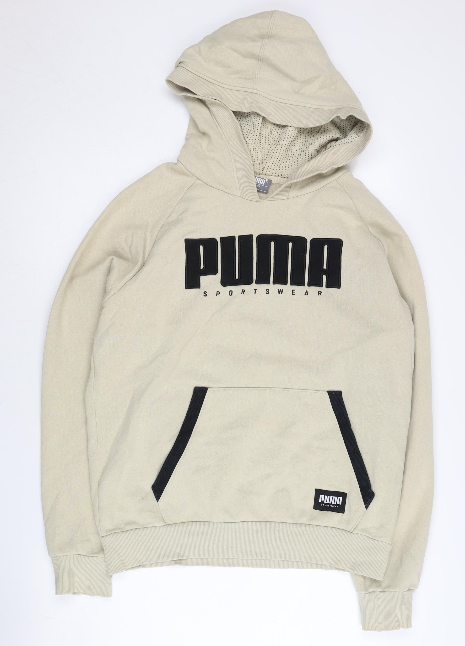 Puma Men's Beige Pullover Hoodie M Logo Sportswear Cotton Blend