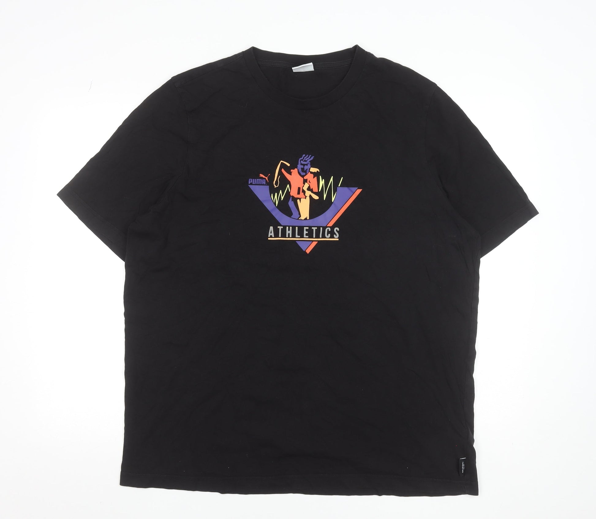 Puma Men's Black Athletics Graphic T-Shirt XL Cotton Crew Neck