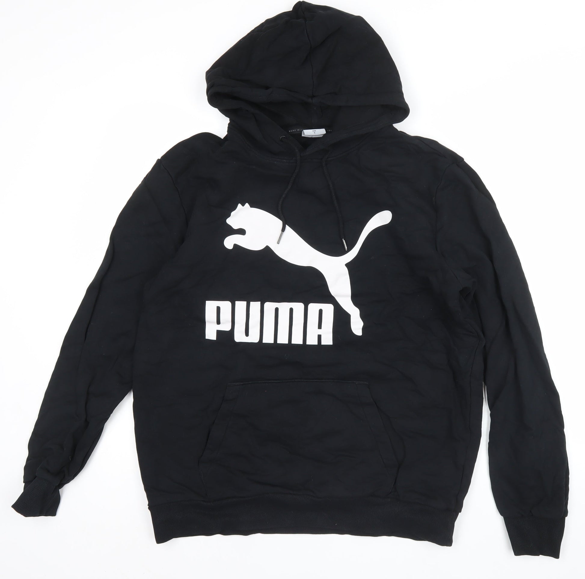 Puma Mens Black L Pullover Hoodie Sports Logo Fleece