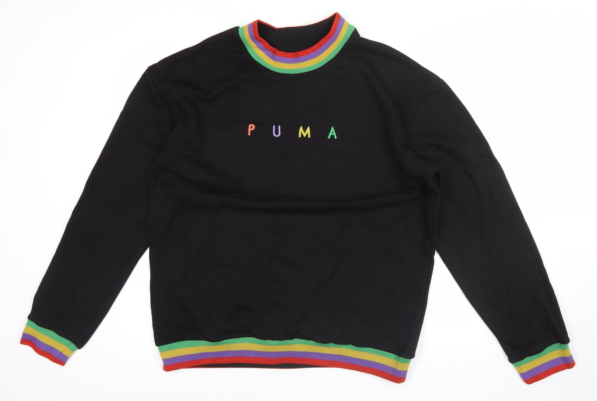 Puma Men's Black L Pullover Sweatshirt Rainbow Trim Embroidered Logo