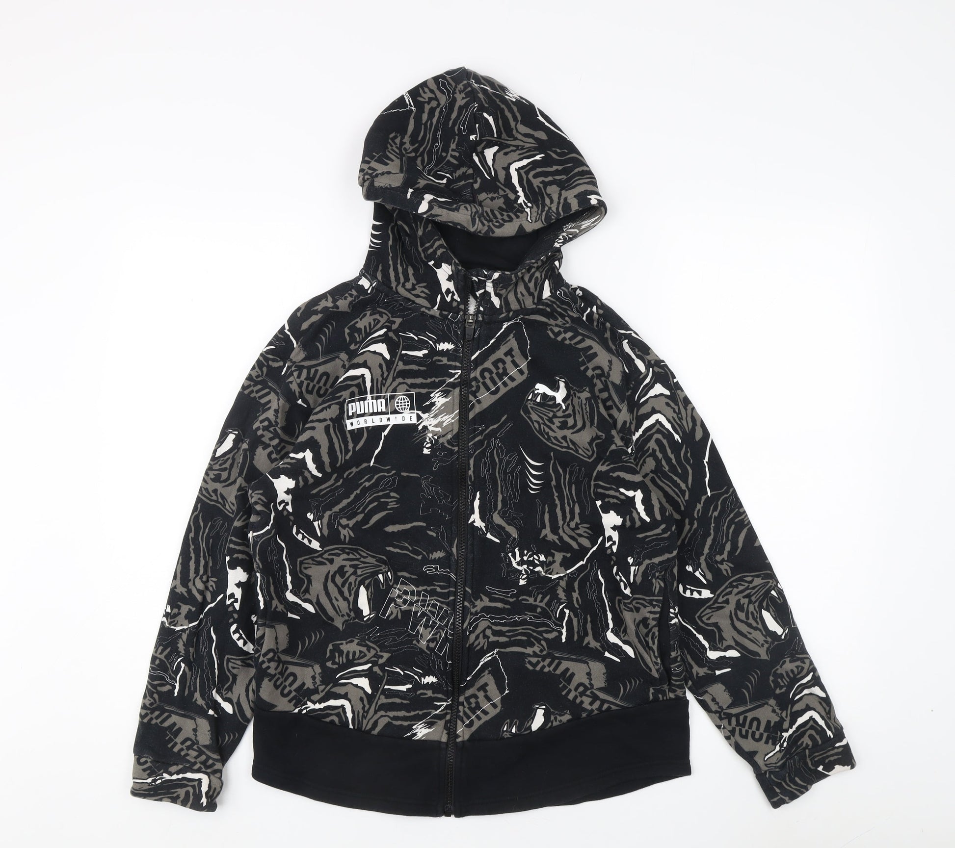 Puma Men's Black Sports Hoodie, Size 164, Logo Accent