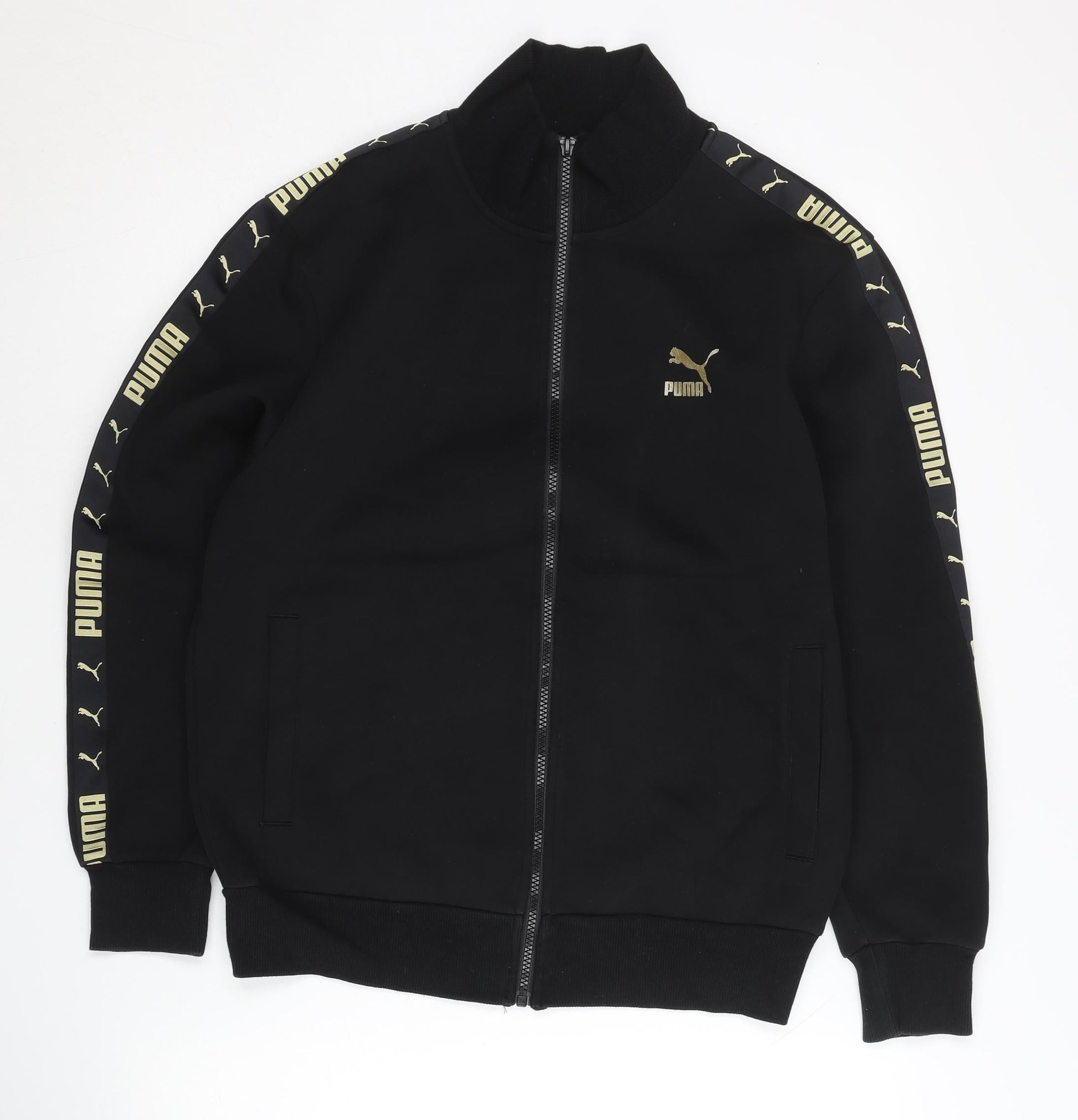 Puma Mens Black XS Track Jacket Full Zip Gold Logo Sportswear
